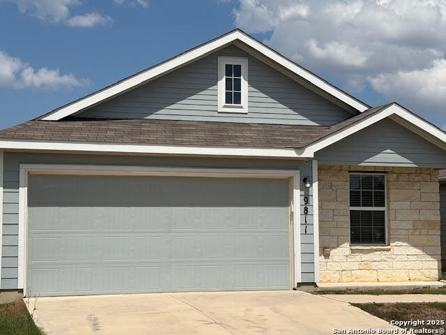 Conveniently located near Loop 1604 and Hwy. 90, this home offers easy access to shopping, dining, entertainment, and all the amenities of city living-without the burden of city taxes. With USDA financing available, qualified buyers may be able to purchase with zero down payment, making this an excellent opportunity for first-time homeowners. Built just 7 years ago, this move-in ready home features a modern open-concept design filled with natural light and thoughtful upgrades throughout. The exterior showcases a durable stone and hard plank finish, while inside you'll find stylish and practical features made for everyday living. Features Gas tankless water heater for endless hot water ~ Gas central heat for year-round efficiency ~ Attic pull-down stairs for added storage ~ 2" faux wood blinds on most windows ~ Garage door opener (less than 3 years old) with battery backup ~ Gas cooking in the kitchen with upgraded light fixtures ~ Walk-in closets in both bedrooms ~ Brand new carpet installed in both bedrooms in August 2025. The oversized backyard-larger than most in the subdivision-offers plenty of room for outdoor living and entertaining. Move-in ready and waiting for you-be sure to put this one on your list!
