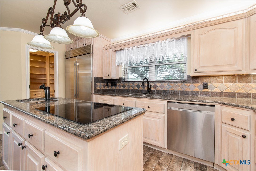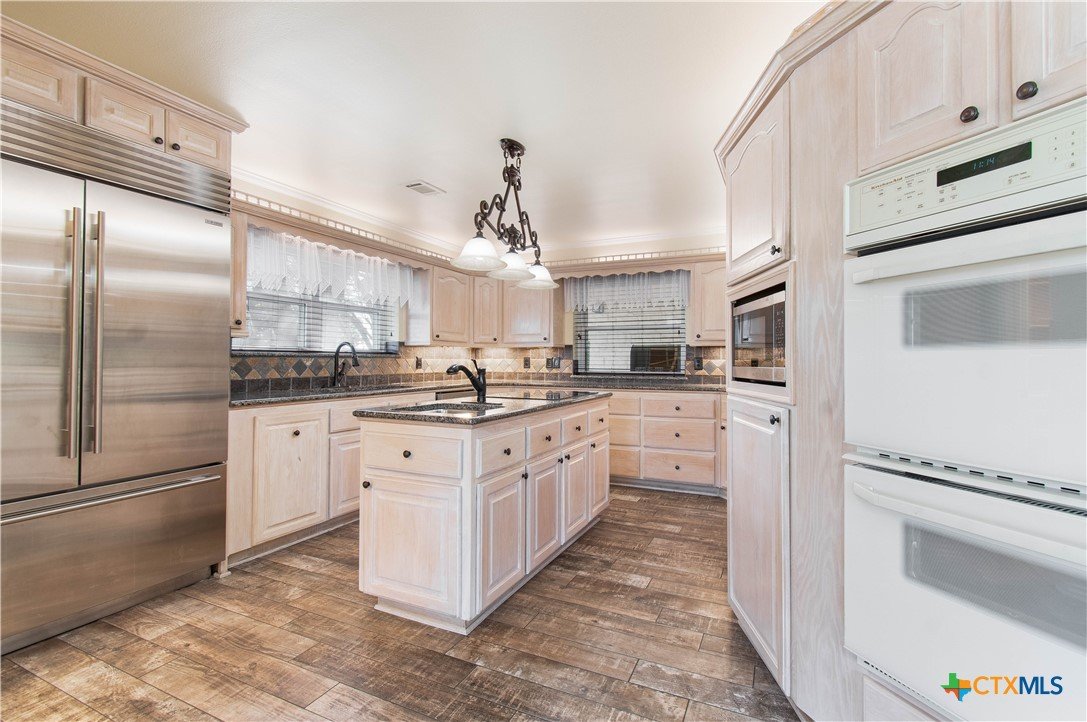 Escape to this exceptional 2-story home surrounded by majestic trees set on 3.5+- acres of serene countryside. This beautifully designed home boasts a welcoming covered porch, ideal for peaceful outdoors. Inside, you will find a kitchen made for a chef with subzero fridge, island, ample storage and butler’s pantry. The breakfast nook includes a plant cabinet with water/drainage and opens to the formal dining room with stunning built in cabinetry. The stunning living room is highlighted by vaulted ceilings and windows that flood the space with natural light. The main-level primary bedroom offers room to relax with an en-suite bathroom featuring a luxurious jacuzzi tub, a walk-in shower and walk-in closet. A guest bathroom and laundry room with sink and hamper cabinet finish off the downstairs. Upstairs, two inviting bedrooms, each with large closets and a full bathroom, provide ample space for family or visitors. An additional storage room provides versatile space for sportsman enthusiast. Additional highlights include a Generac Generator, 5 car garages with ample shelving, 1 bedroom fully functional guest house apartment/mother-in-law suite, complete with a kitchen and full bathroom perfect for guests or rental income and a game room. This home perfectly blends country living with convenience. Located just 5 minutes from Belton and 15 minutes from Killeen/Ft. Hood, you can enjoy the peace of rural life while having urban amenities. Additional acreage is available. Total square footage including main house, guest house and game room is 4,164. There are 4 total bedrooms, 5 full bathrooms and 4 half bathrooms on the property.
