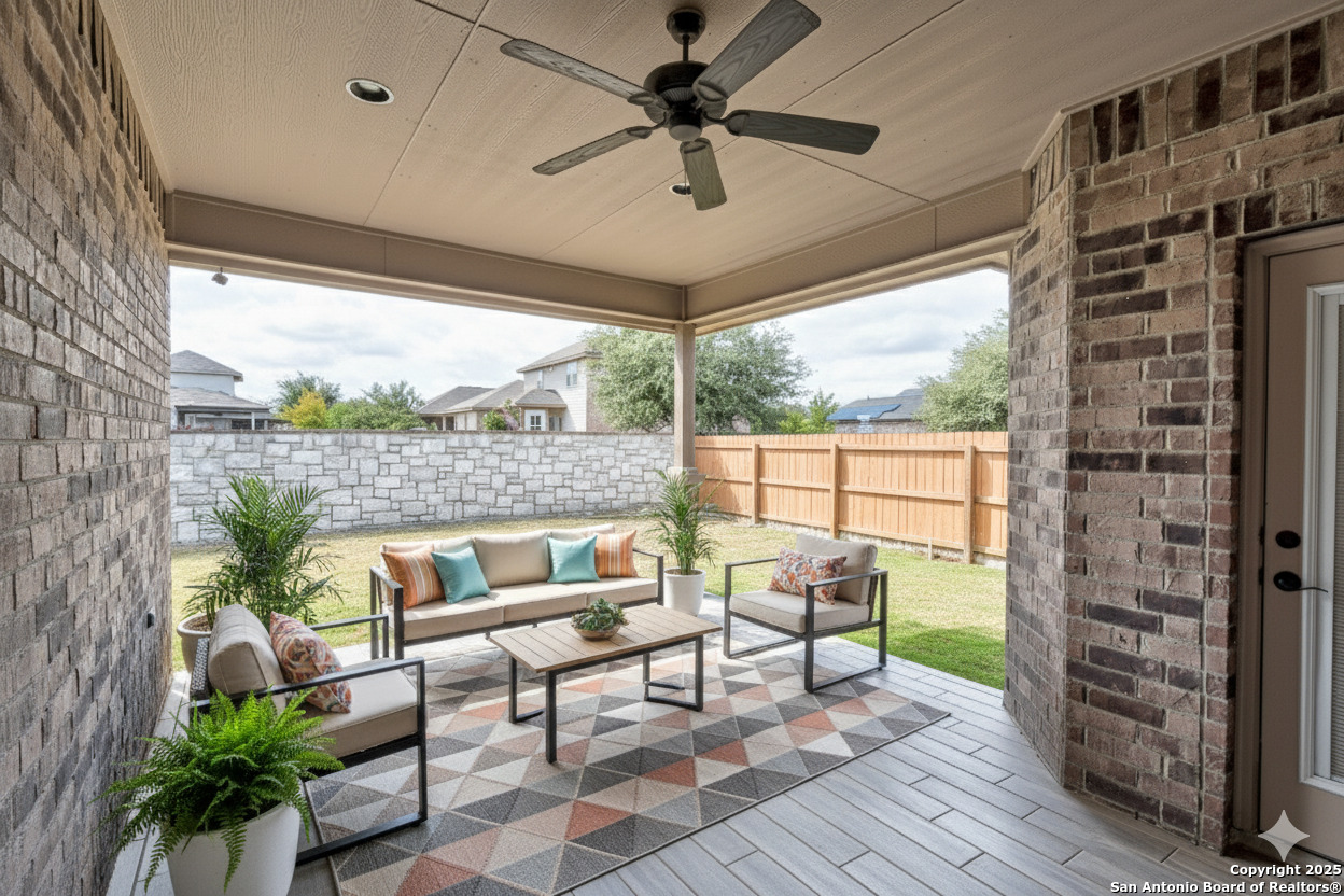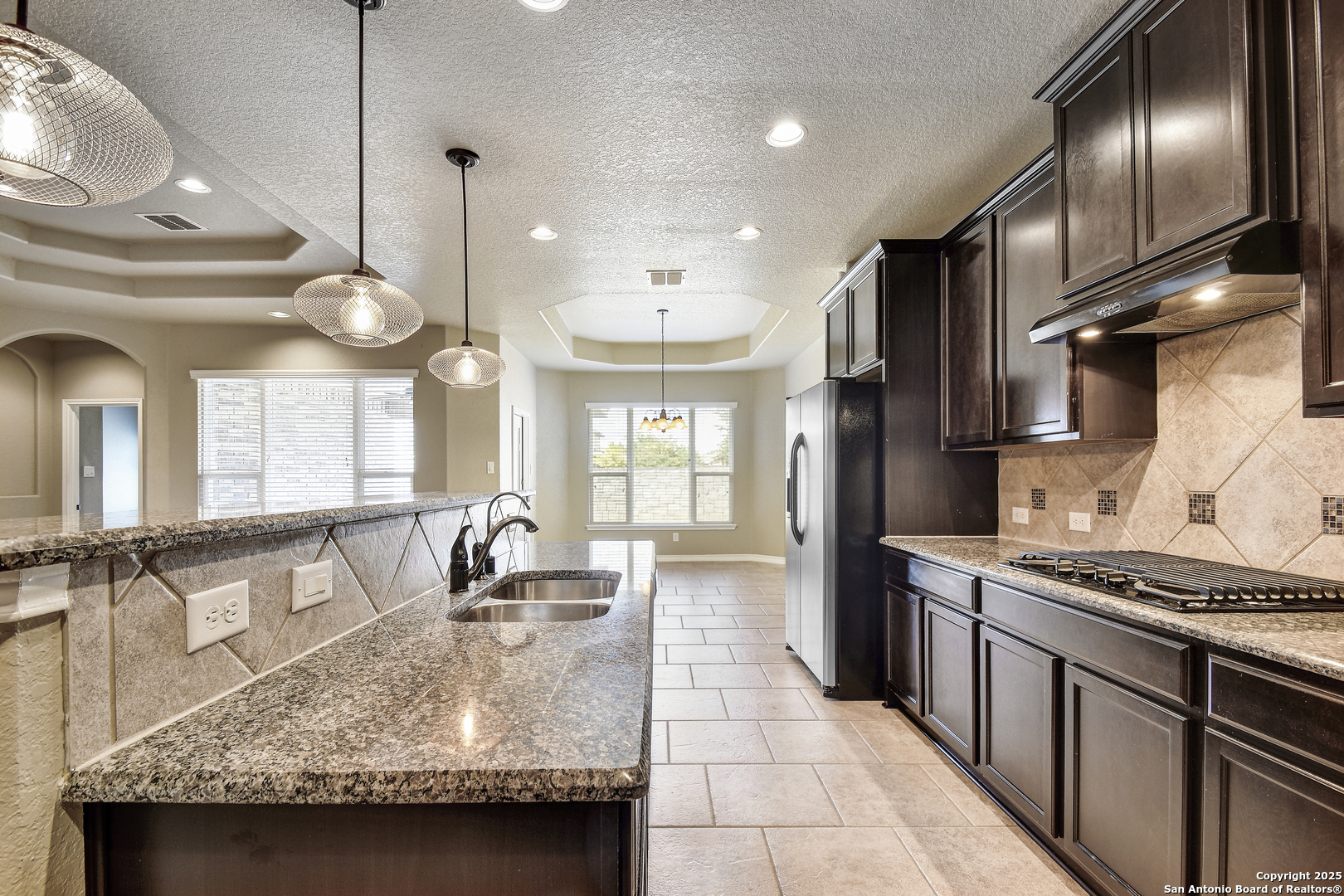 **Professional Photos Coming Soon** Discover this exceptional single-story home, perfectly blending style, space, and comfort. Spanning just over 2,000 square feet, this residence features a thoughtfully designed open floor plan that creates an inviting atmosphere from the moment you step inside. High ceilings and beautiful architectural details throughout set a luxurious tone, while the massive great room provides an incredible space for both relaxing and entertaining. The heart of the home is the chef's kitchen, a true culinary dream with a large granite-topped center island, a gas stove, and an abundance of cabinet space to store all your cookware and essentials. Retreat to the primary suite, a serene sanctuary offering a spa-like experience with dual sinks and an oversized walk-in shower. Every detail has been carefully selected to provide both beauty and function. Step outside to your private backyard, where a large covered patio extends your living space, creating a tranquil escape ideal for enjoying your morning coffee or hosting a barbecue with friends, rain or shine. This home is a true gem, offering a perfect combination of elegant design and practical living. Don't miss your chance to see it!