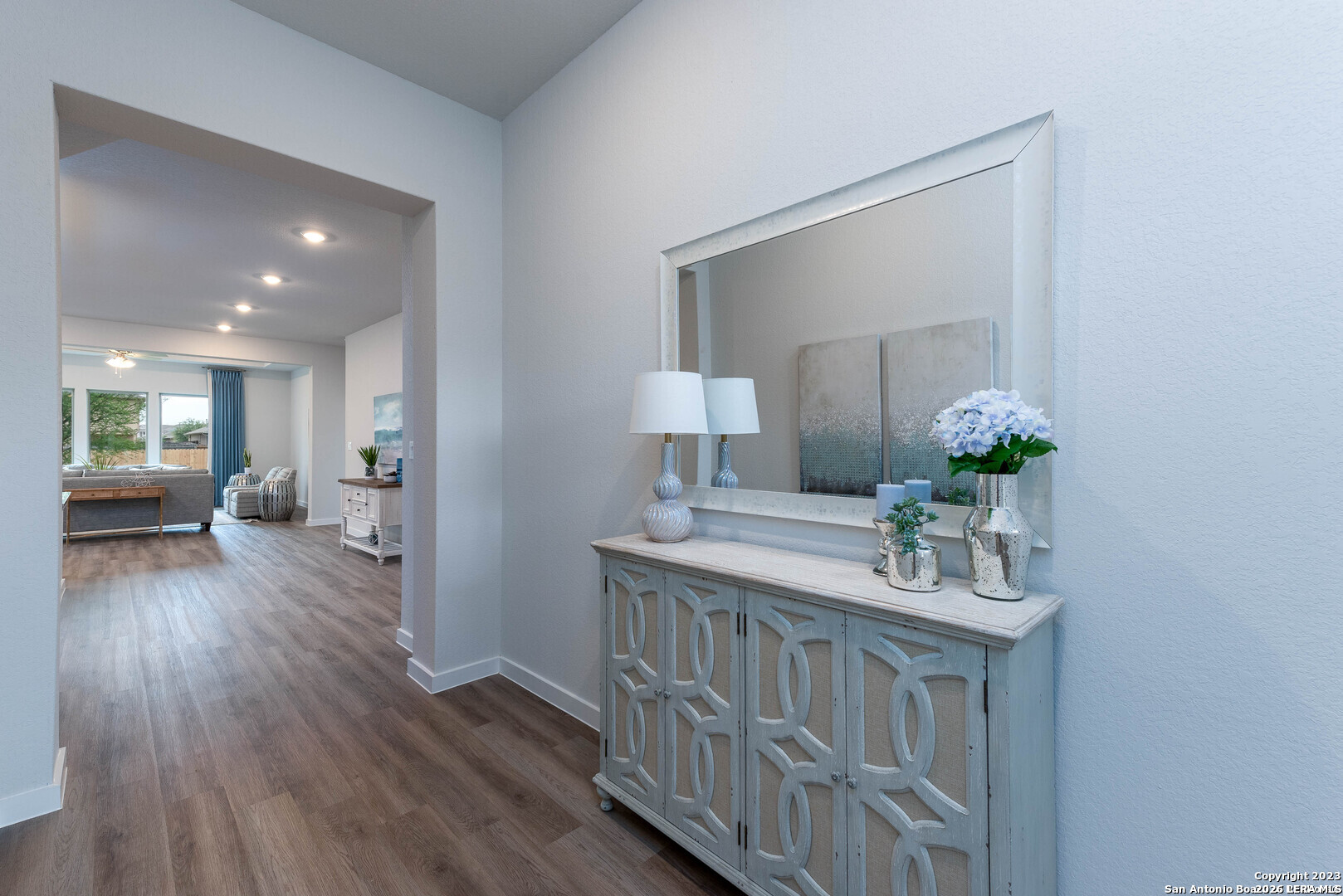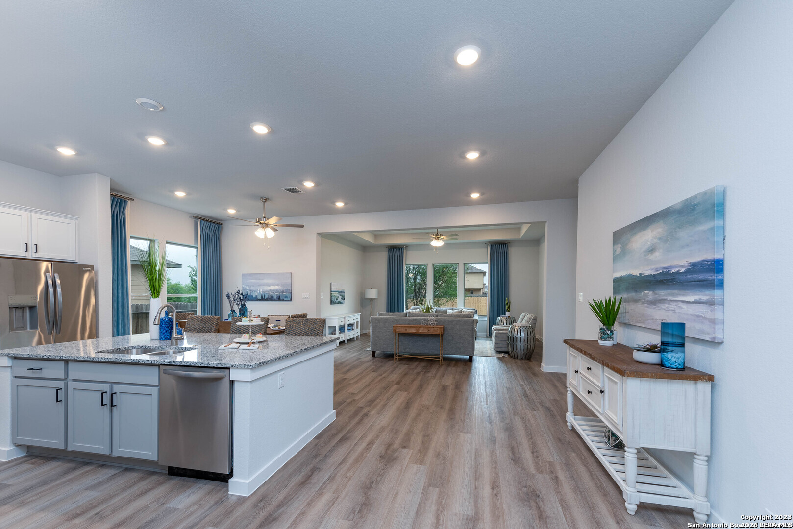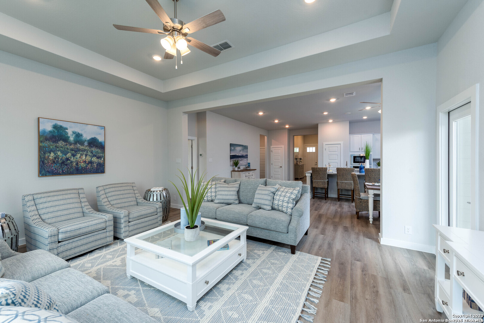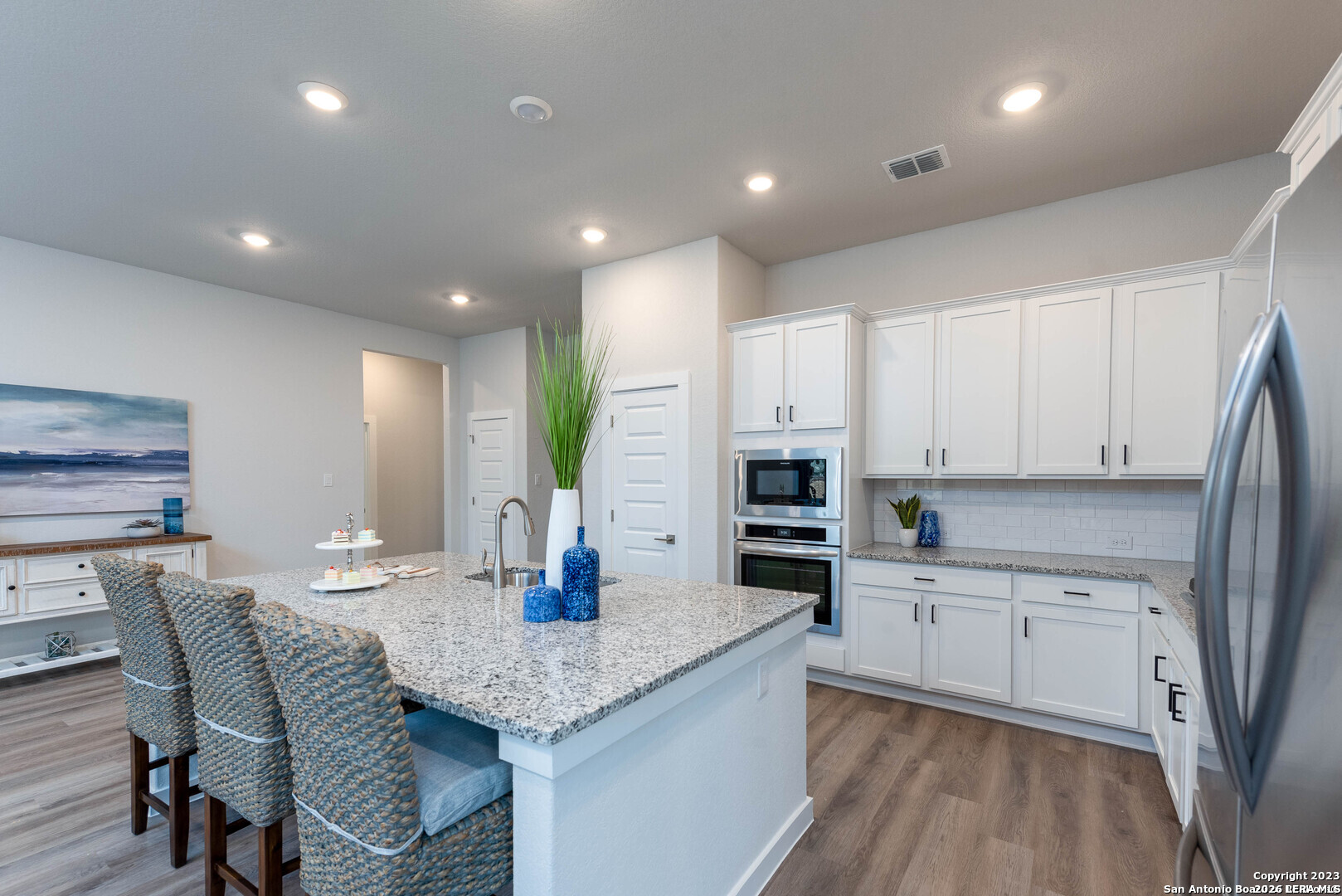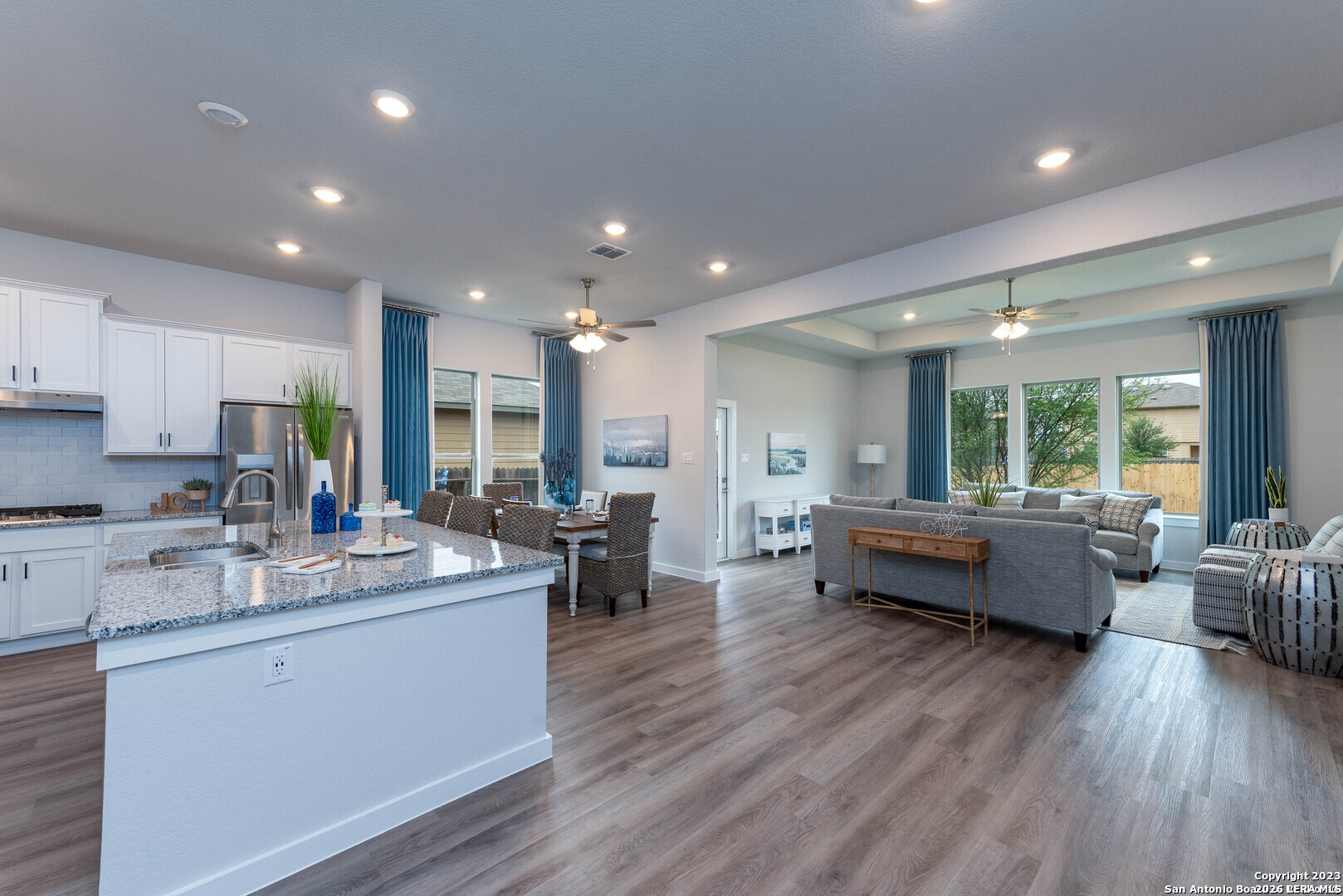 Welcome to your Joseph Creek Homes home in Rhine Valley, Schertz, Texas! Discover luxury touches throughout this spacious 2115 square foot, 3 bedroom, 2 bath home. Enjoy the convenience of a two-car garage. Inside, upgrade your style with the decorator color selections, Brushed Nickel hardware and Brushed Nickel plumbing fixtures, adding a touch of sophistication to every room. This home features 42" Upper cabinets in the kitchen complete with a huge island,cook top and built in appliances. The bright and open floor plan has luxury vinyl plank throughout the primary living areas, tile in the baths and lush carpet in the bedrooms.