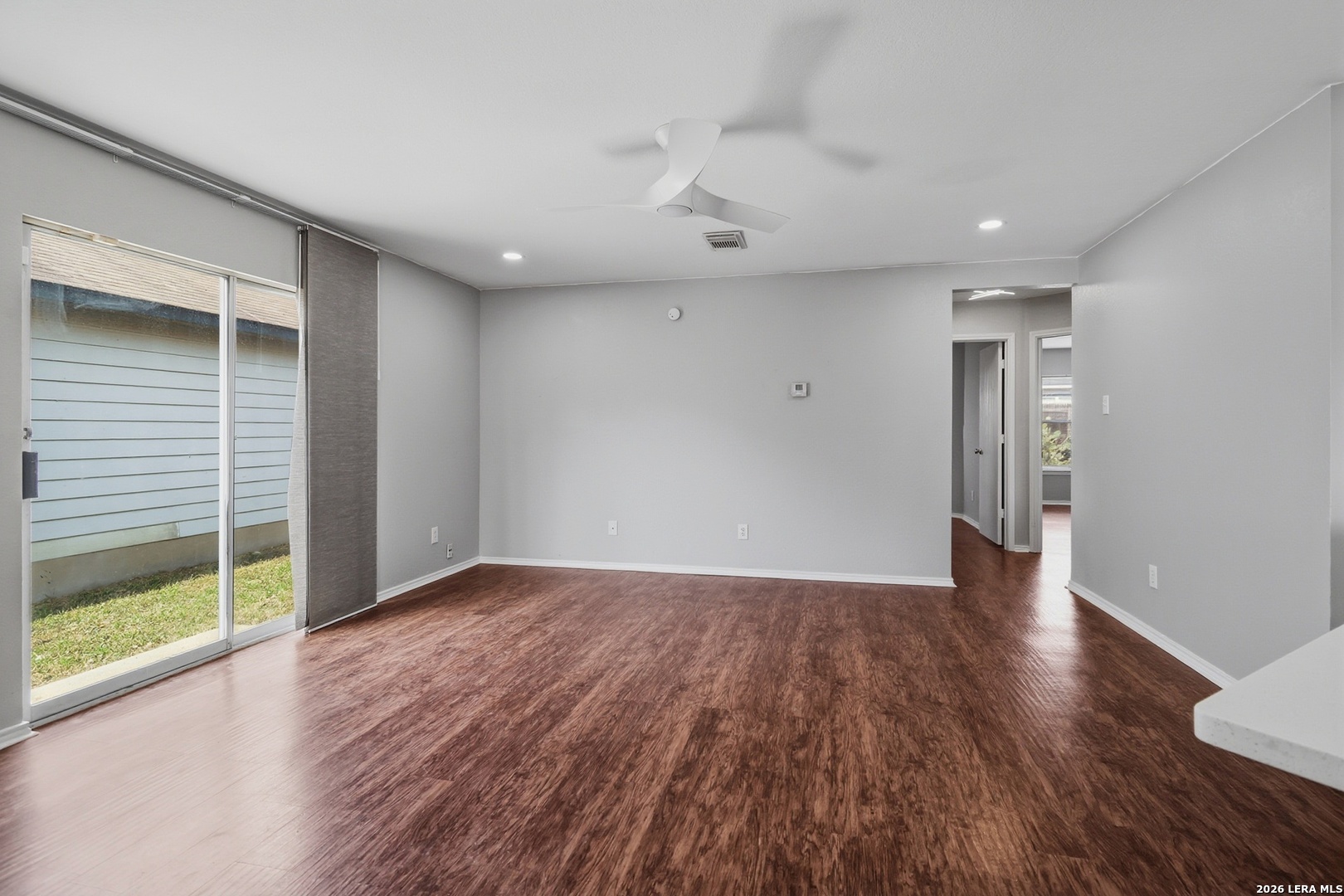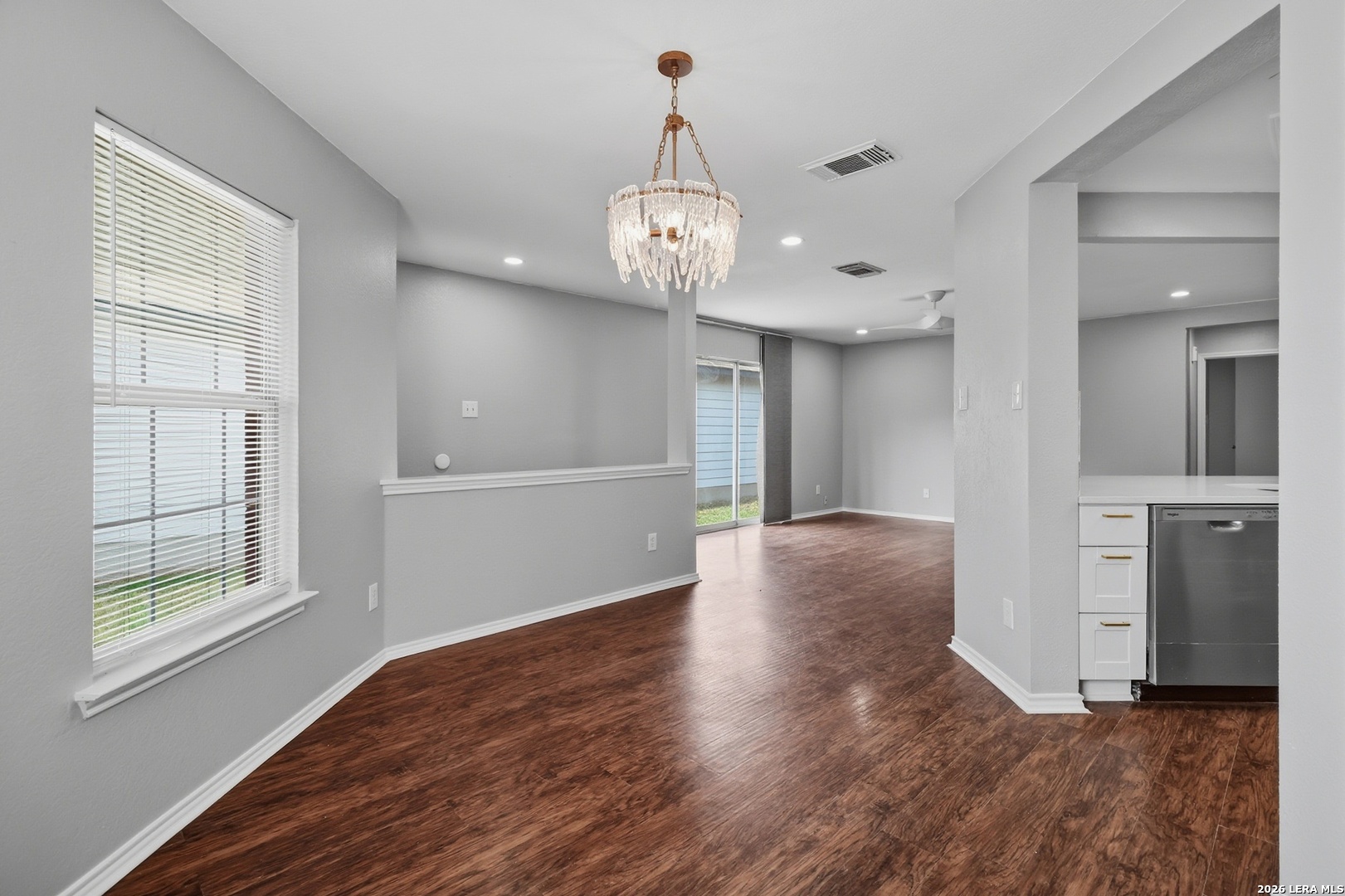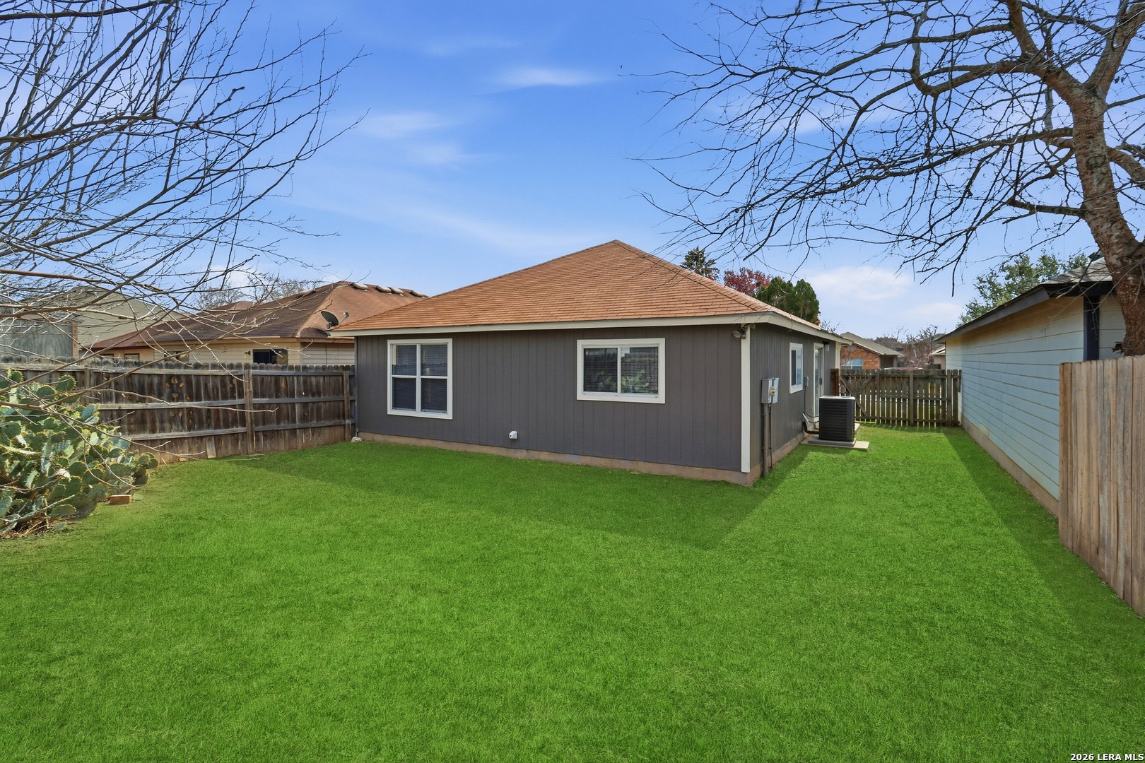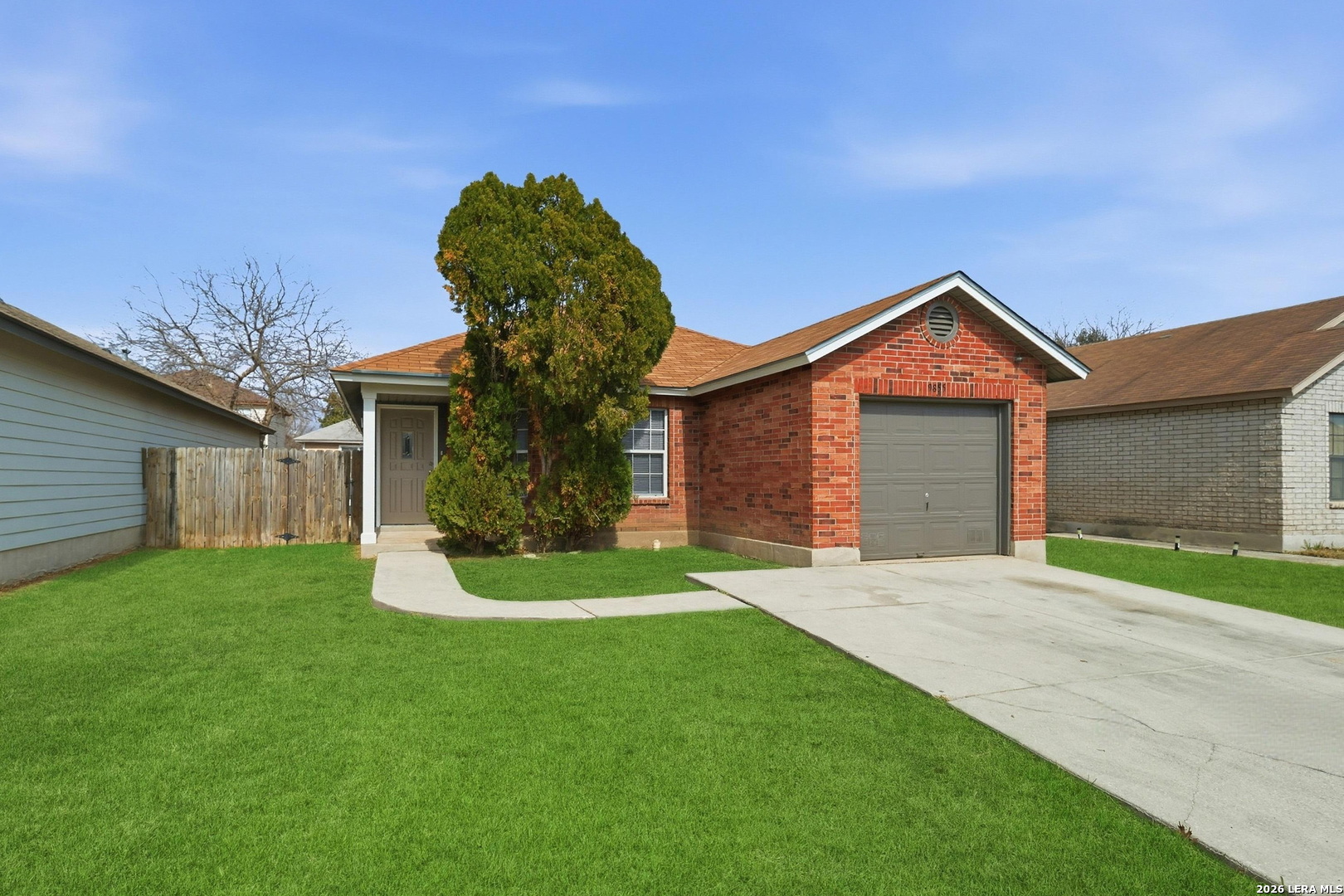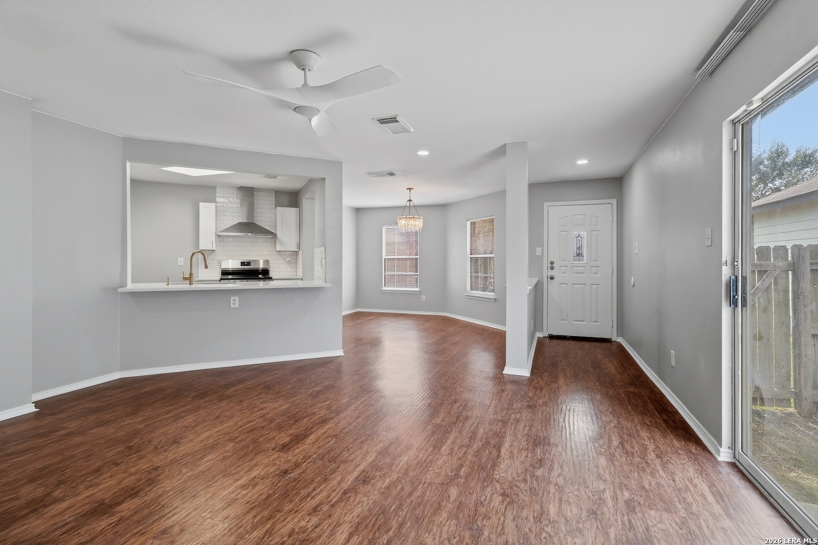 Welcome home to this beautifully updated single-story 3 bedroom, 2 bath residence that perfectly blends modern style with everyday comfort. Bright and inviting, the open floor plan features hardwood floors throughout, stylish light fixtures, and a spacious living area. The updated kitchen shines with stainless steel appliances, generous counter space, and a large pantry space, making it ideal for both daily living and entertaining. Both bathrooms have been tastefully updated with contemporary finishes. The home has been fully painted inside and out, giving it a fresh move-in ready feel from curb to core. Recent big ticket upgrades include a newer roof (2020) and HVAC system (2022), offering peace of mind for years to come. Step outside to a large fenced backyard with patio. The partially converted garage provides flexible space, ideal for a home office, gym or bonus room, while still maintaining garage storage space. Situated in a great community close to Lackland Air Force Base, major highways, shopping and restaurants, this home is perfect for downsizers, first time home buyers, investors, or those seeking Airbnb potential - this one truly checks all the boxes!