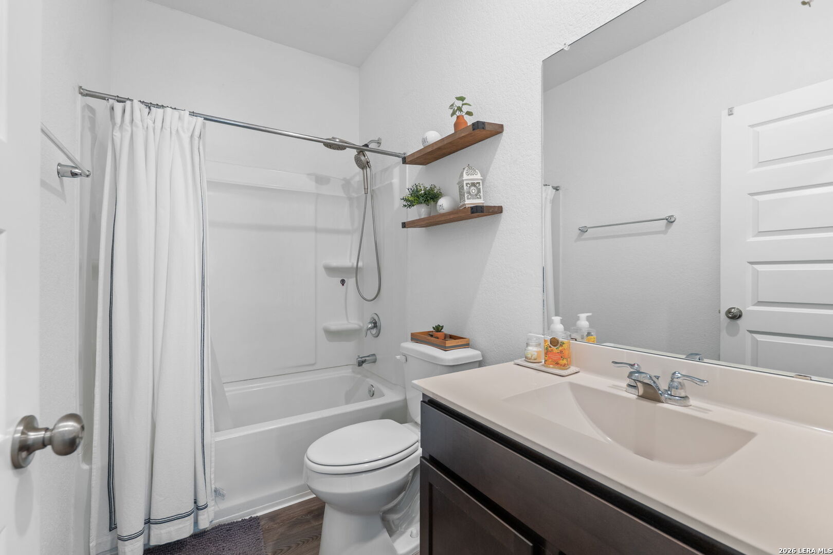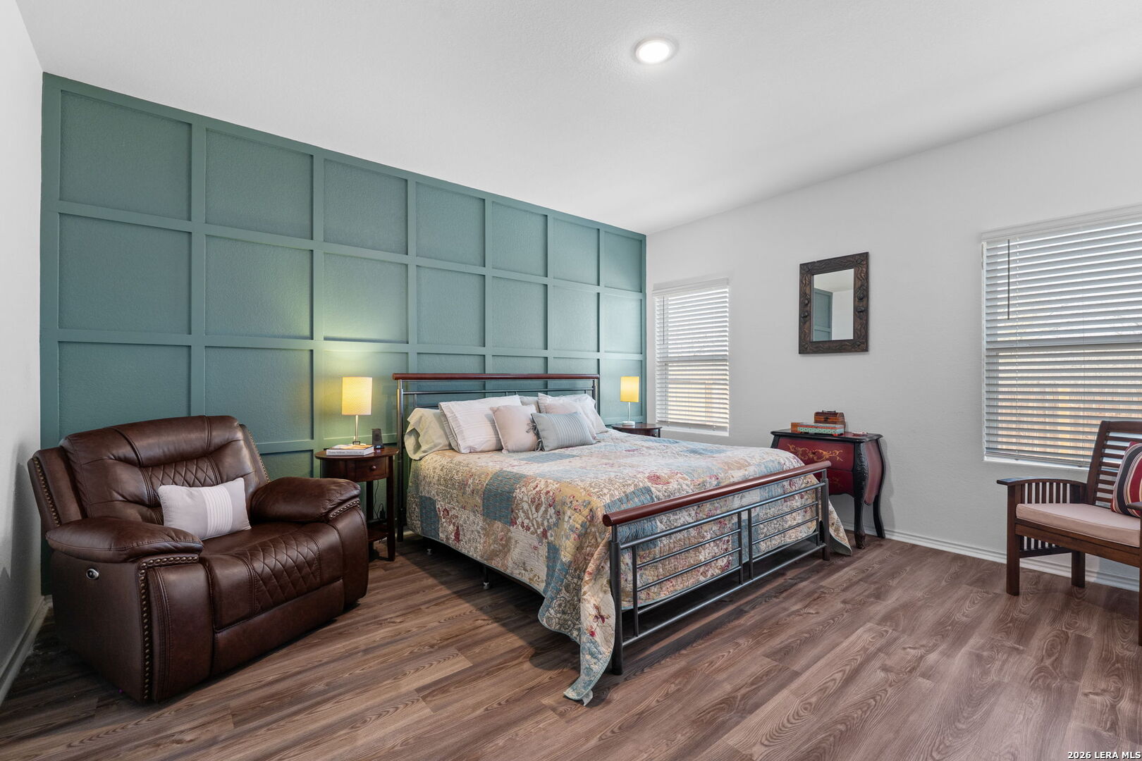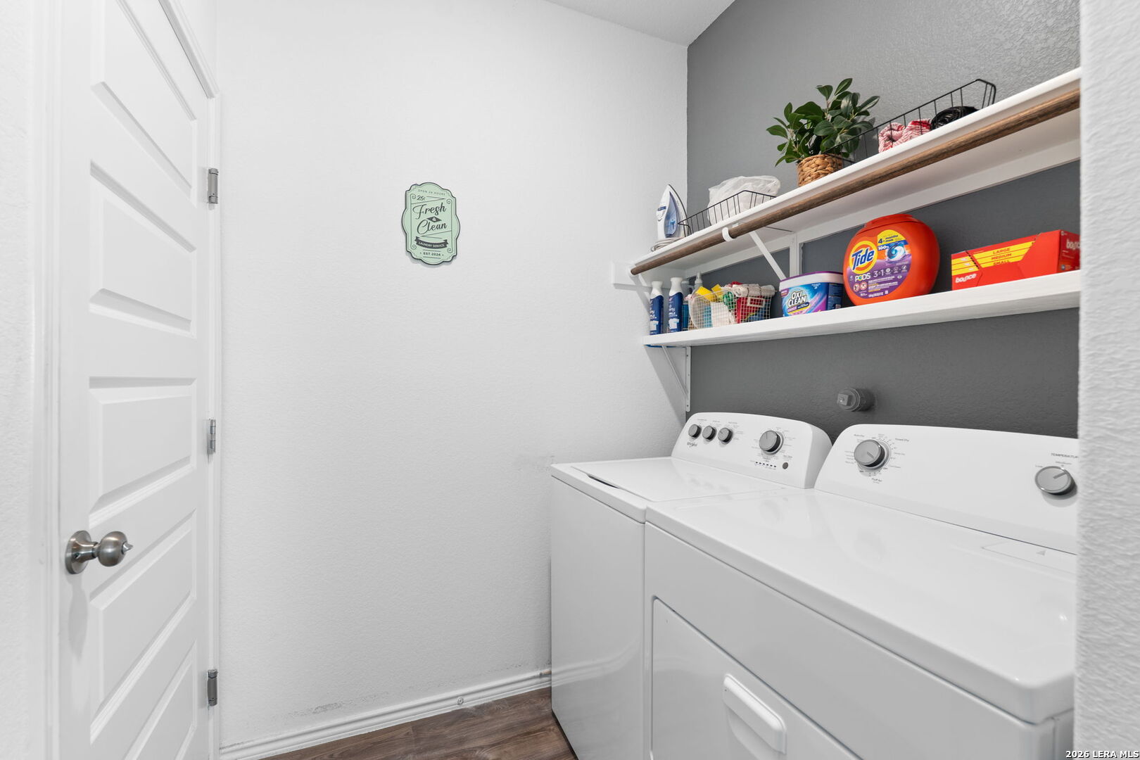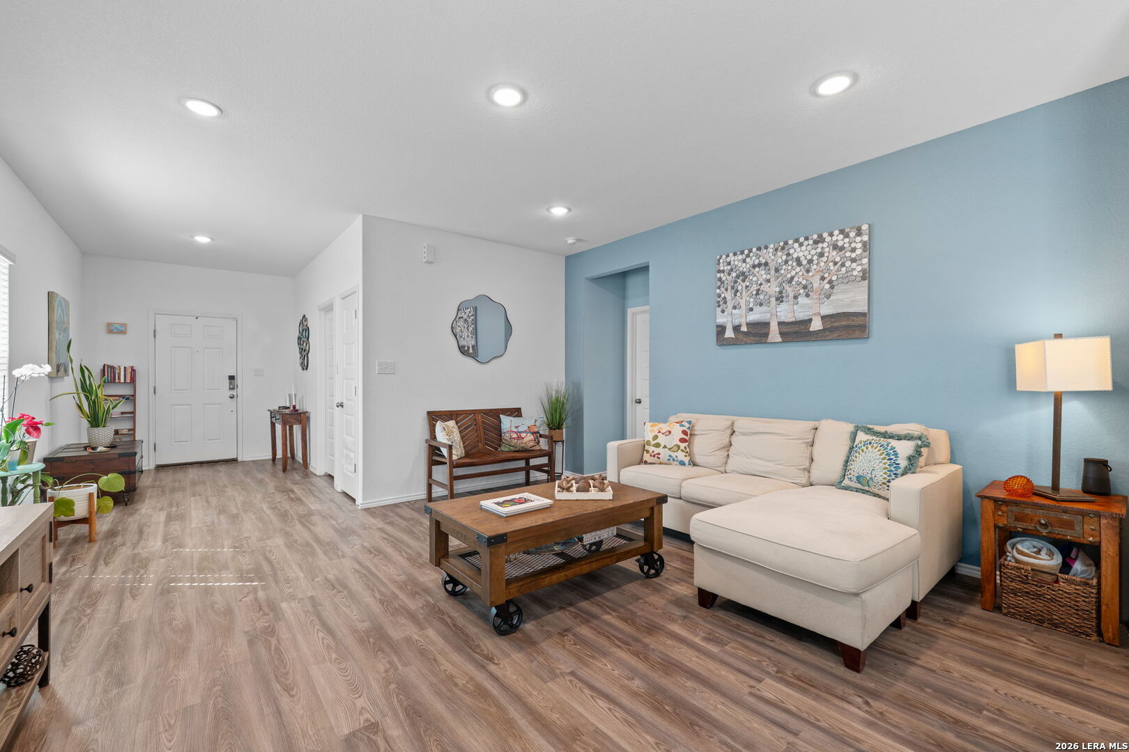 Welcome to this stylish and thoughtfully designed home that blends comfort with functionality. The heart of the home features an open-concept living space where the great room, dining area, and kitchen flow seamlessly together. The kitchen is beautifully appointed with 36" cabinetry, granite countertops with tumbled stone backsplash, a center island perfect for gathering, and a generous pantry. Luxury wood-look vinyl plank flooring enhances the entire home (no carpet), while additional recessed lighting brightens both the great room and primary bath. Privately situated at the back of the home, the primary suite offers a peaceful retreat complete with dual vanities, cultured marble countertops, modern rectangular sinks, a linen closet, walk-in shower, walk-in closet with custom decorative shelving, and a separate water closet for added privacy. A custom-designed and painted accent wall in the primary bedroom adds a distinctive touch, complemented by accent paint throughout the home. Additional upgraded touches include decorative shelving in the guest bath, laundry room, and garage, along with custom window blinds. Step outside to enjoy the 10x10 uncovered patio-perfect for relaxing or entertaining. Exceptional included features such as the Century Home Connect smart home package enhance everyday living. Refrigerator, washer, and dryer are also included with purchase, making this home truly move-in ready.