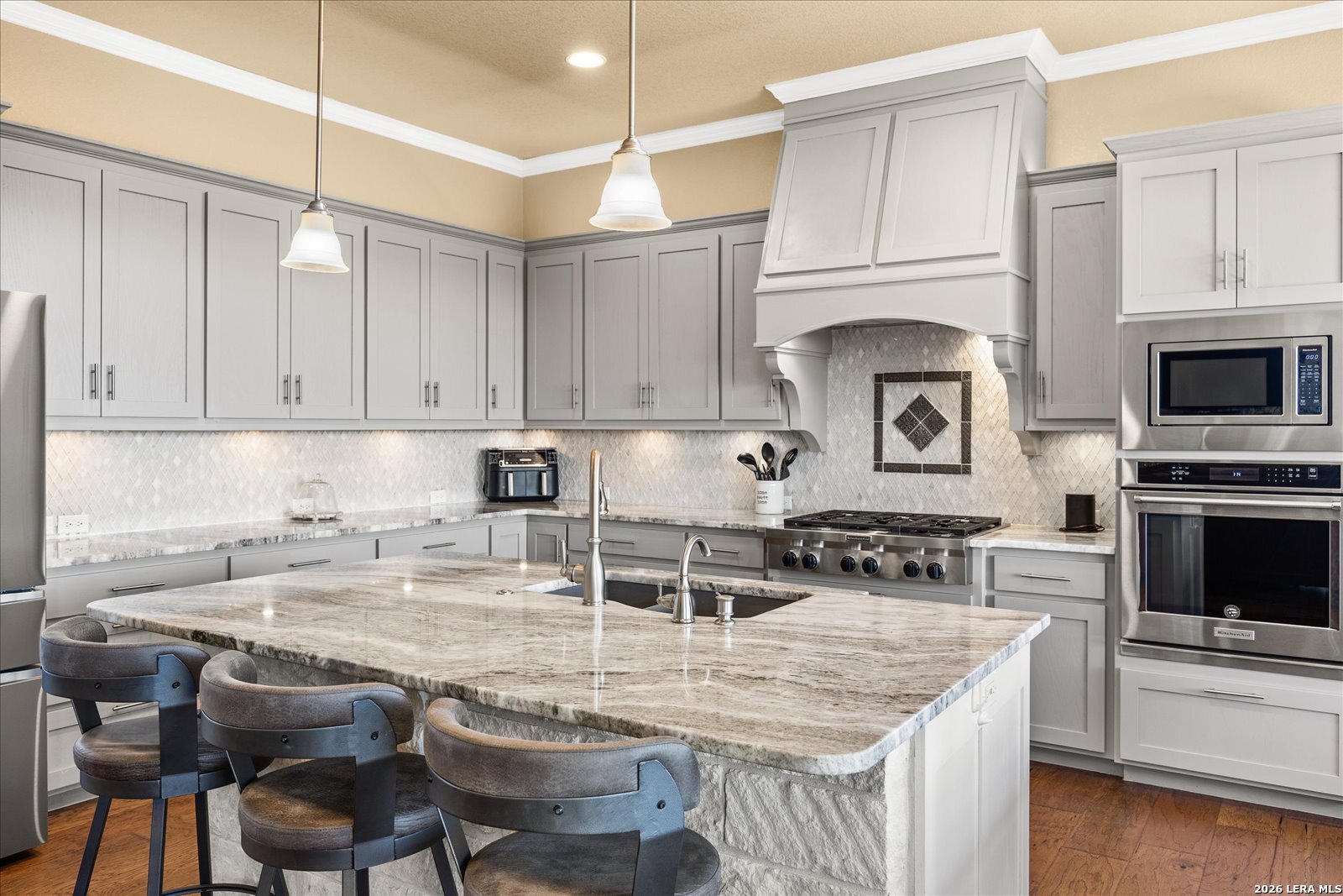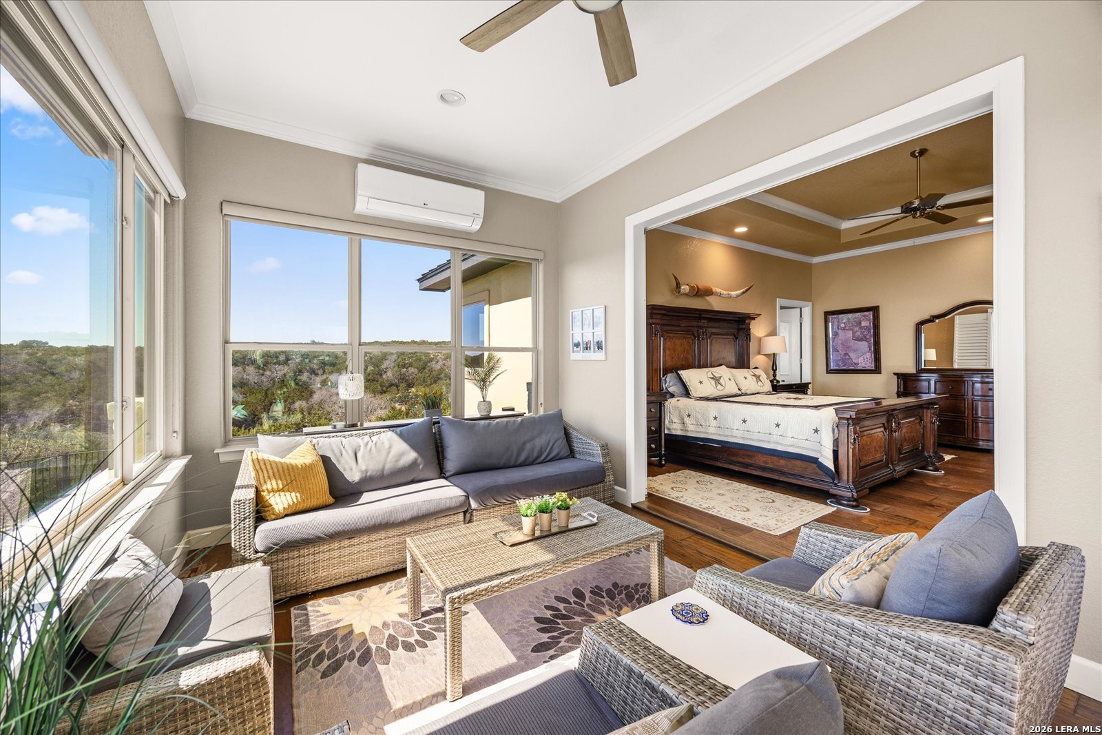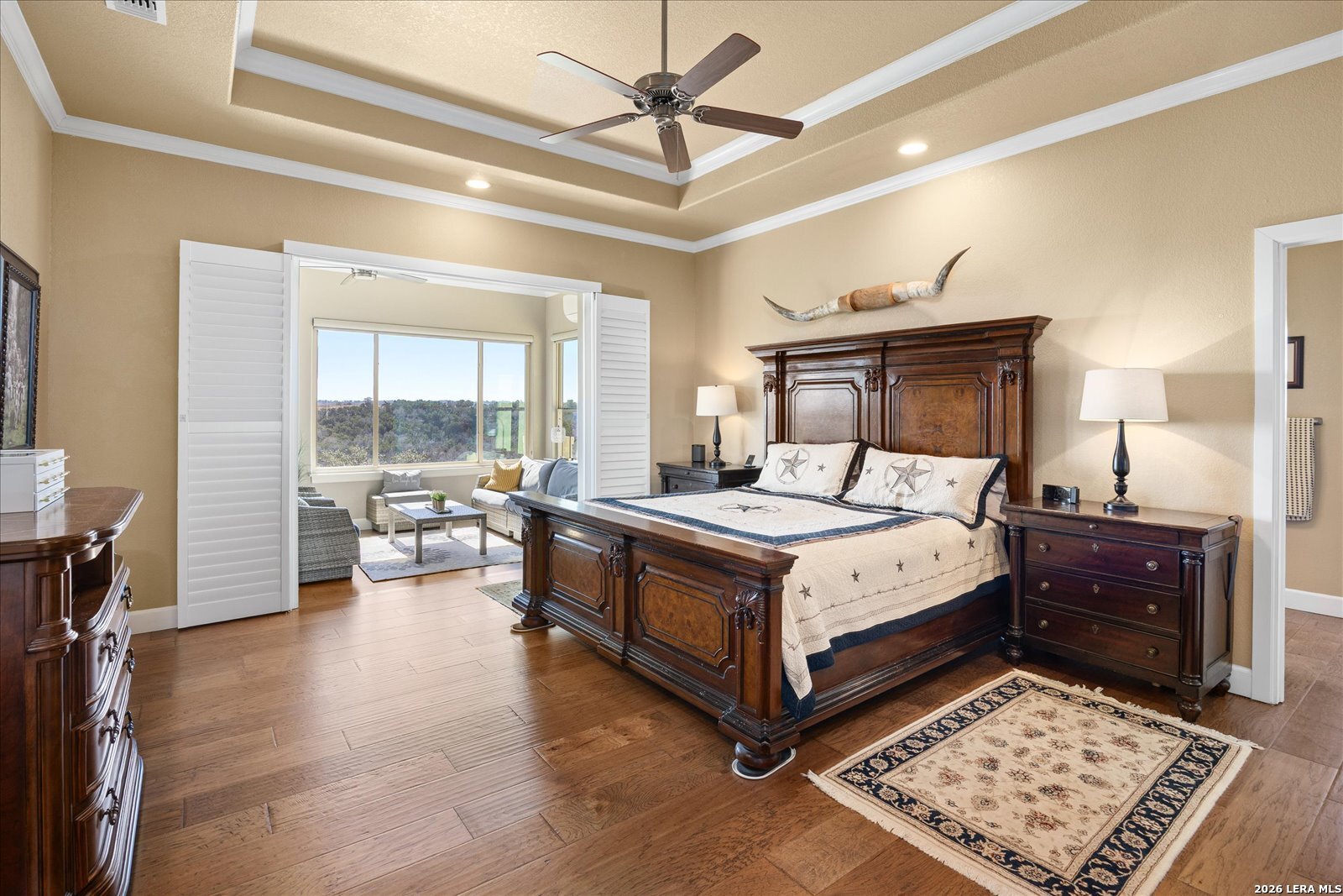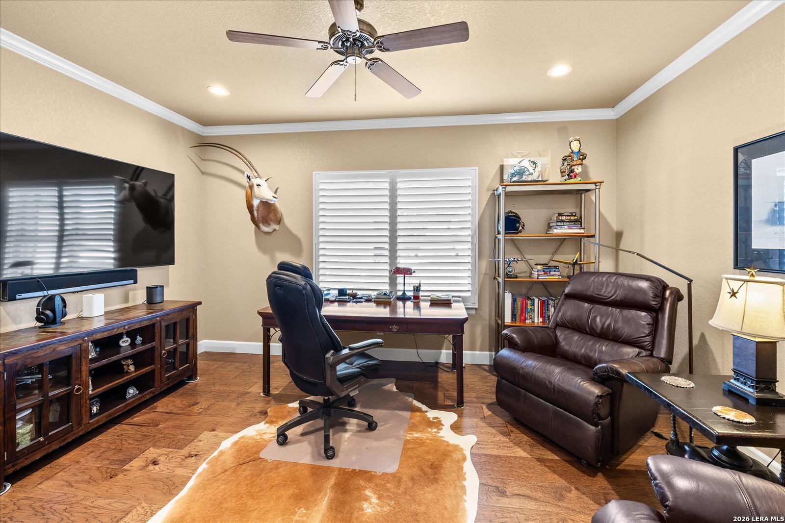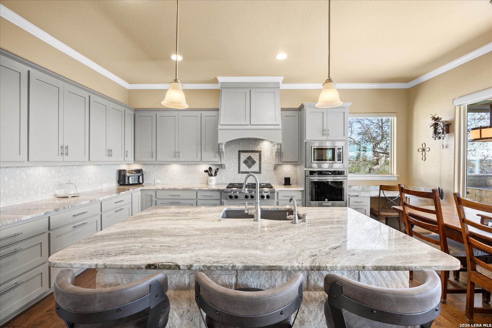 Beautiful one-story Hill Country classic in Highlands of Tapatio, perfectly positioned on a premier .327-acre cul-de-sac lot with a fenced, grassy yard and breathtaking views for miles. The bright and airy eat-in kitchen features a gas cooktop, abundant custom cabinetry, and gorgeous granite countertops-ideal for everyday living and entertaining. Engineered hardwood floors flow throughout, complemented by stunning rock-work and a striking stone fireplace framed by custom built-ins. The combined pantry/utility room is impeccably organized with built-ins and a sliding barn door. The expansive primary suite offers a private sunroom retreat, capturing sweeping unobstructed country views. Step outside to the covered patio complete with grill, sunshades and panoramic scenery-perfect for relaxing evenings or hosting gatherings. Located just four miles from downtown Boerne and one mile from Tapatio Springs Resort, you'll enjoy convenient access to golf, pools, dining, and resort amenities while savoring the privacy and tranquility of this property.