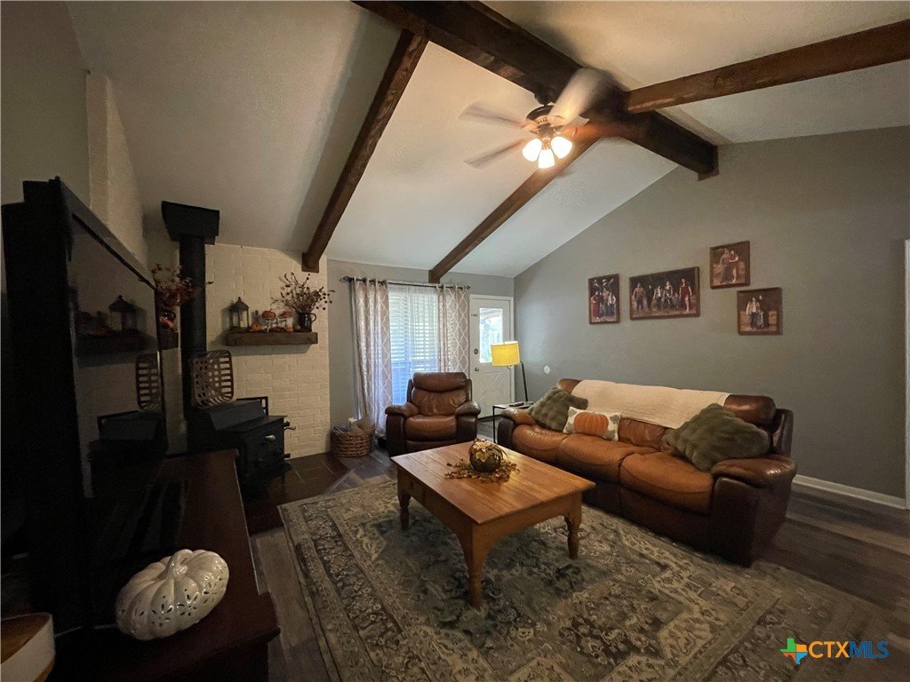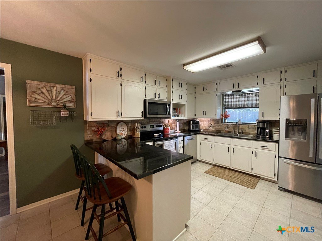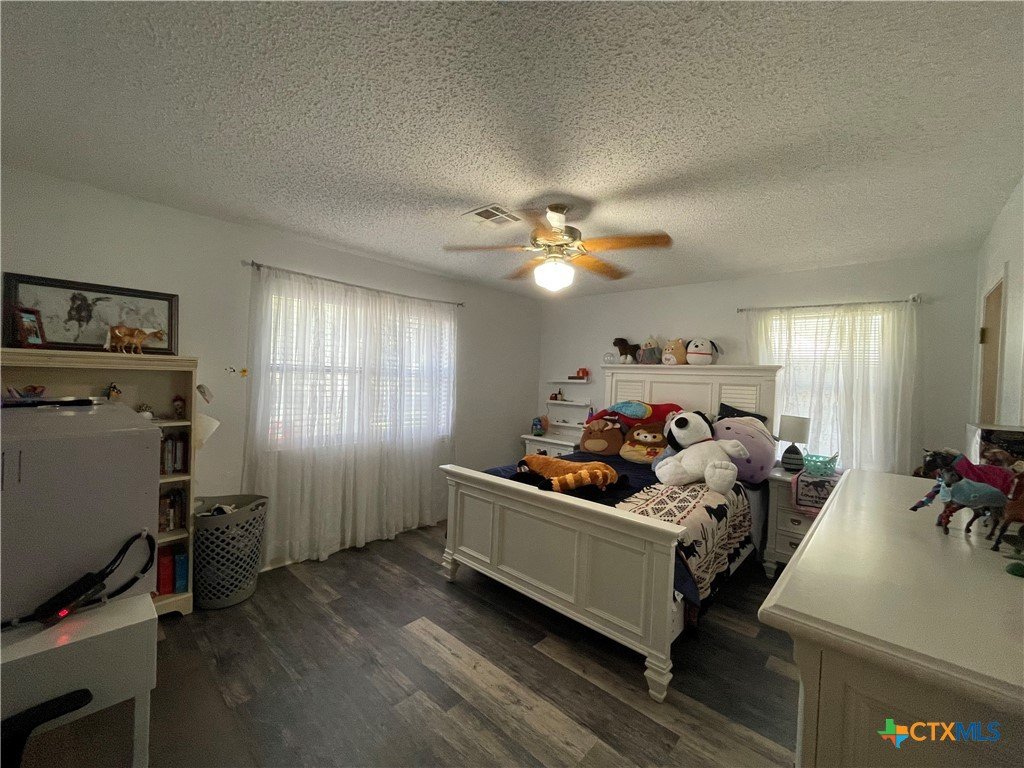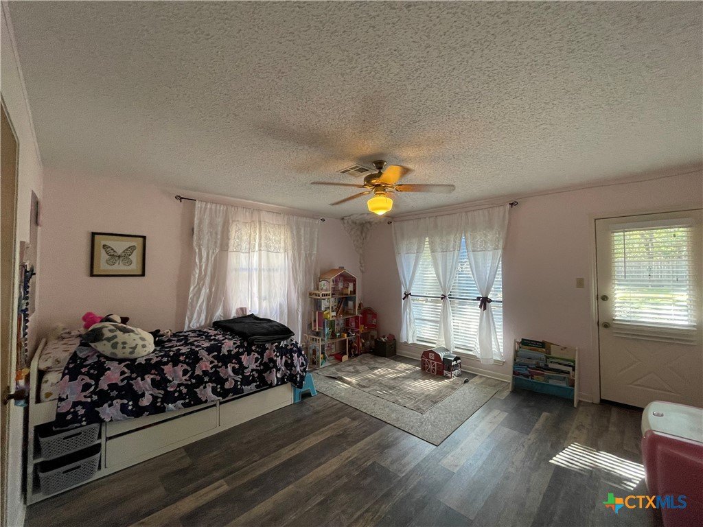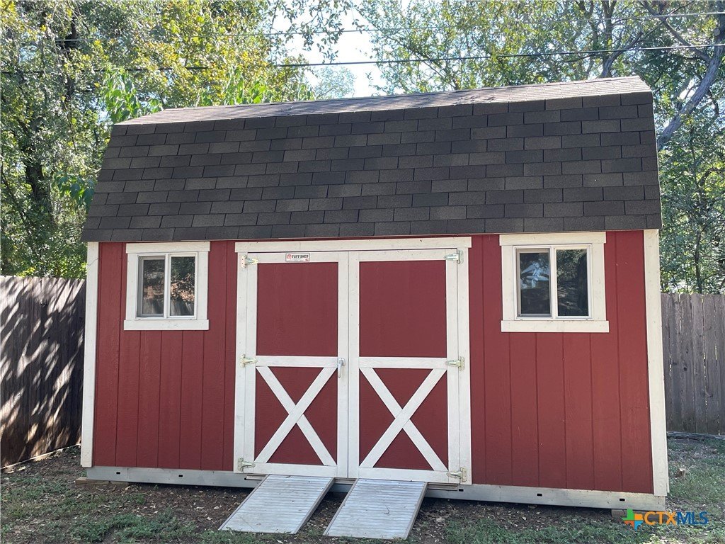 Beautiful well maintained, three bedroom with two bathrooms. Popular split floor plan. The bedroom are a nice size with good closets and ceiling fans. Luxury vinyl flooring except the kitchen and dining room which have ceramic tile. Ship lap walls in the dining room add country charm. The exterior has been painted. Roof, gutters and water heater were replaced about a year ago. The kitchen appliances are four years old. The Two story Tuff storage building is three years old and has a transferable warranty. Mature trees shade the large backyard with a playscape and covered patio for hours of outdoor fun. The playscape is a custom made, the garage is temporarily being used as a fourth bedroom with a mini split AC, still a fully functioning garage.