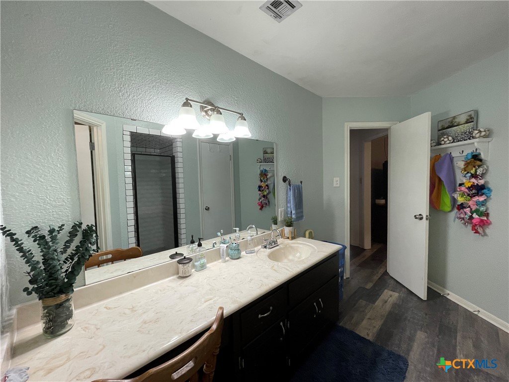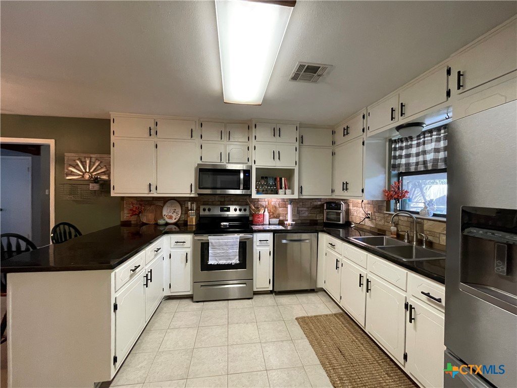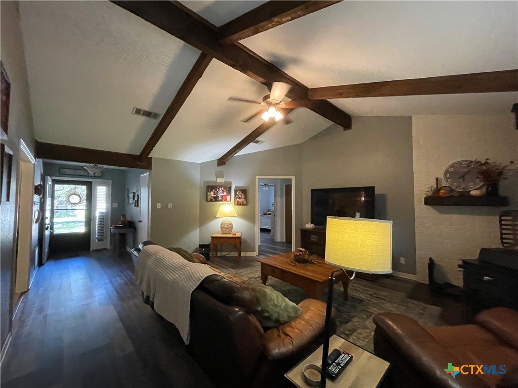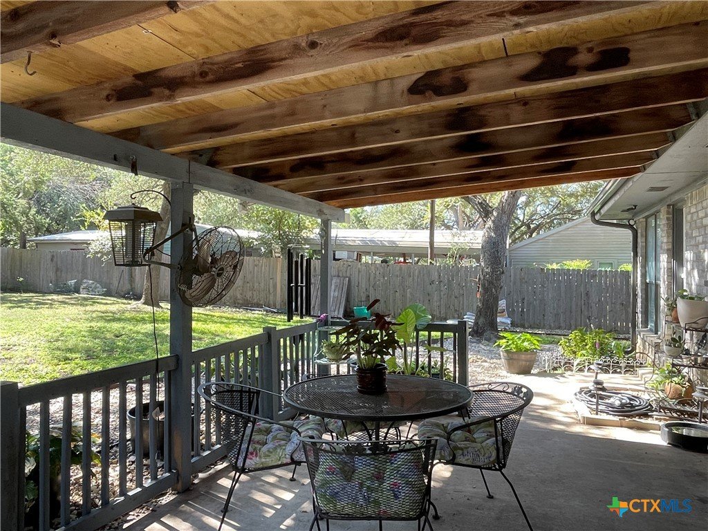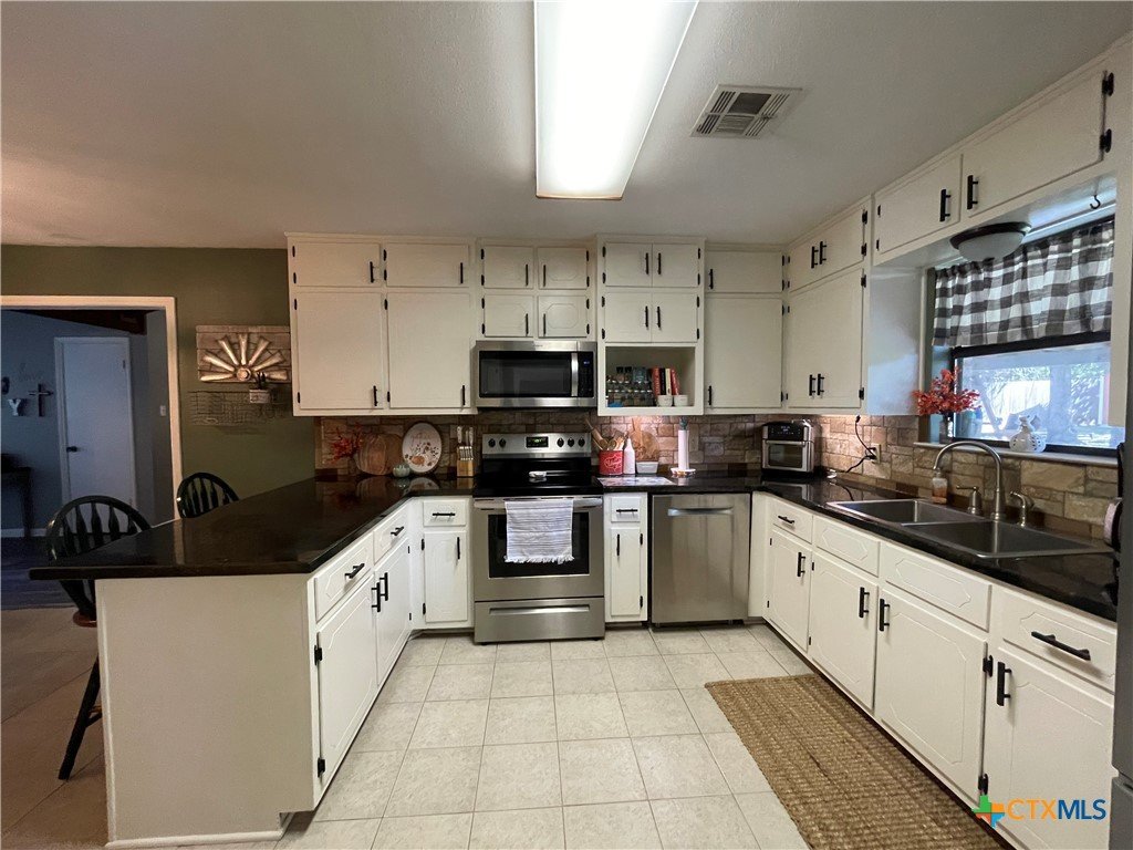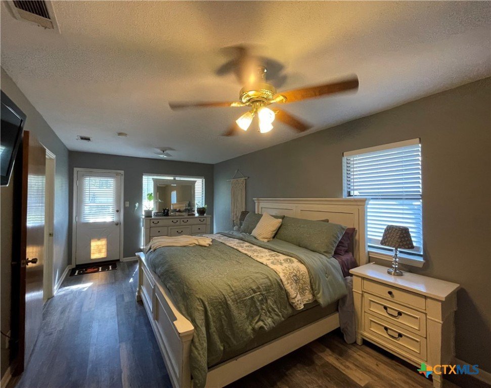 Beautiful well maintained, three bedroom with two bathrooms. Popular split floor plan. The bedroom are a nice size with good closets and ceiling fans. Luxury vinyl flooring except the kitchen and dining room which have ceramic tile. Ship lap walls in the dining room add country charm. The exterior has been painted. Roof, gutters and water heater were replaced about a year ago. The kitchen appliances are four years old. The Two story Tuff storage building is three years old and has a transferable warranty. Mature trees shade the large backyard with a playscape and covered patio for hours of outdoor fun. The playscape is a custom made, the garage is temporarily being used as a fourth bedroom with a mini split AC, still a fully functioning garage.
