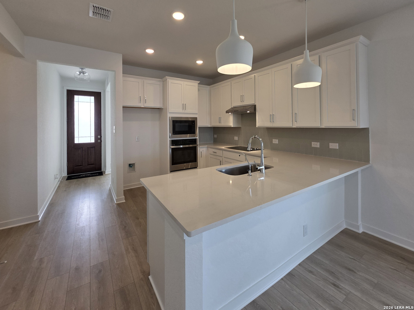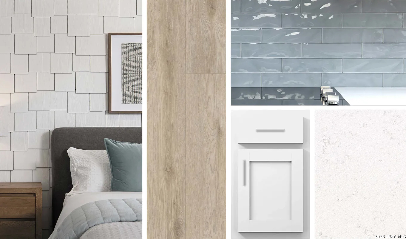 This thoughtfully designed one-story home offers three bedrooms and two baths with a comfortable, open layout ideal for everyday living. The eat-in kitchen features a center island, walk-in pantry, pendant lighting, and stainless appliances, flowing seamlessly into the living and dining areas. The private primary suite is located downstairs and includes a spacious bath with separate tub and shower, double vanities, and a walk-in closet. Two secondary bedrooms provide flexibility for guests or a growing family. Covered patio on the back of the home. This home is part of our Coastal Collection - inspired by shorelines and sunny escapes. Light-filled spaces, soft linen and sea glass tones, and airy textures create a relaxed, breezy vibe that makes every day feel like a getaway. Perfect for entertaining or unwinding at home. This home is in Saddlebrook Ranch, a master-planned community in Schertz, offering easy access to I-35, shopping, dining, Randolph AFB, a pool, playground, and top-rated schools.