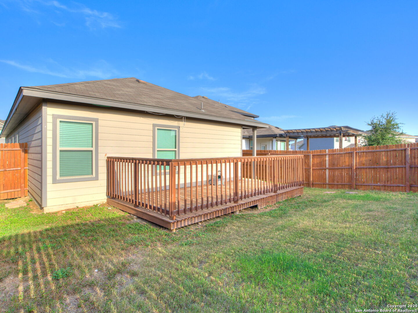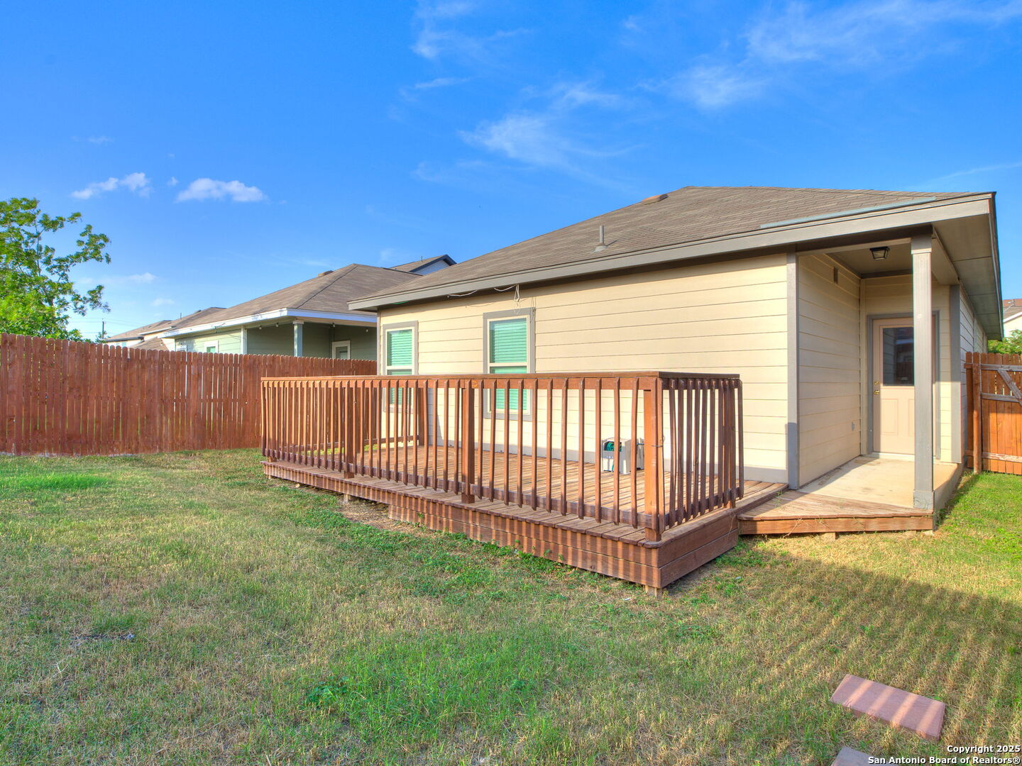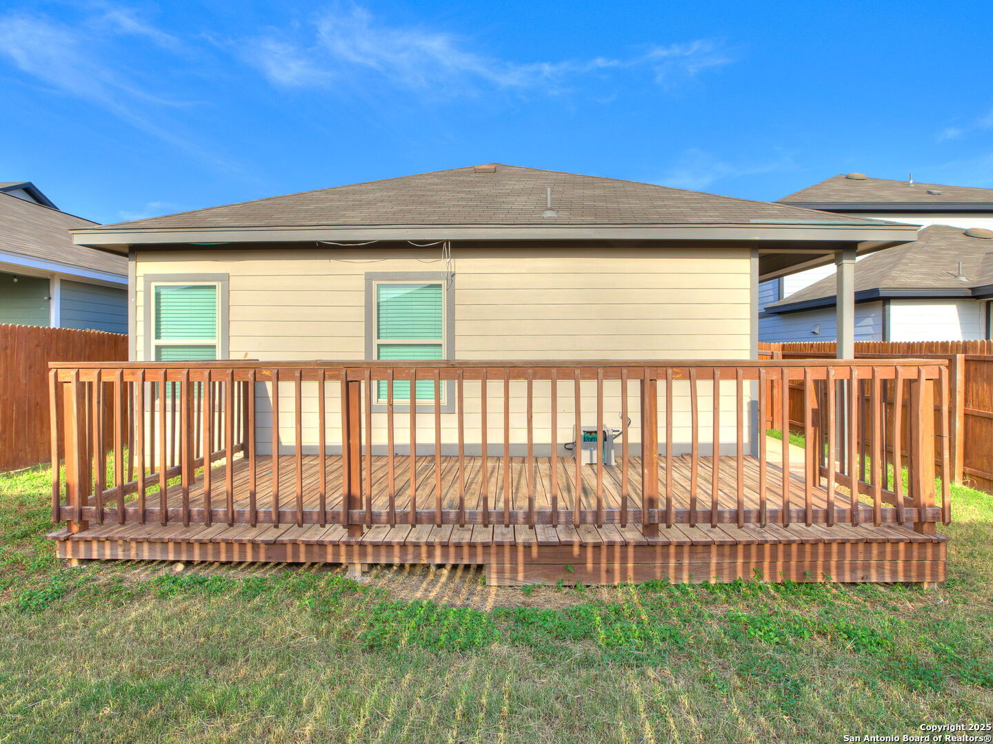 One story home with 4 bedrooms, 2 baths and 2 car garage. Open floor plan with heigh ceilings. Beautiful tile throughout main living areas. Kitchen features, island, granite C-tops, 42" cabinets, subway tile, walk in pantry, and SS appliances. Master bath with oversized walk-in shower, and 2 vanities. Exterior has covered Patio and deck set up for entertaining or relaxing. Texas A&M, Amazon Warehouse, and Toyota Manufacturing are a few minutes away.
