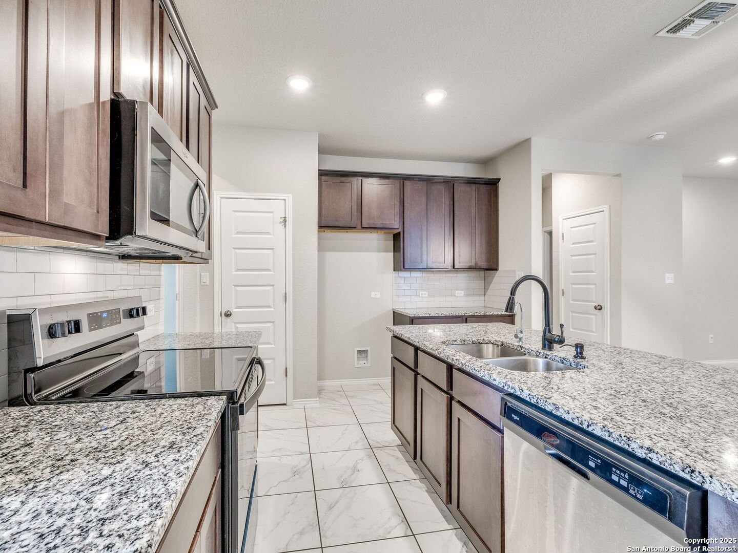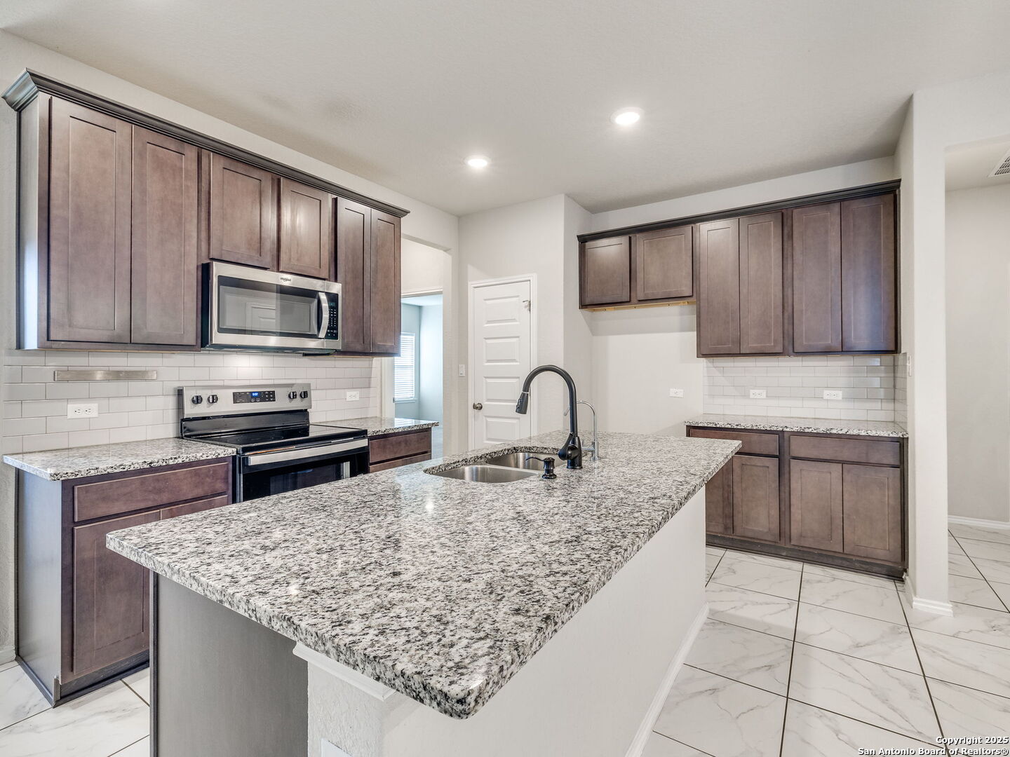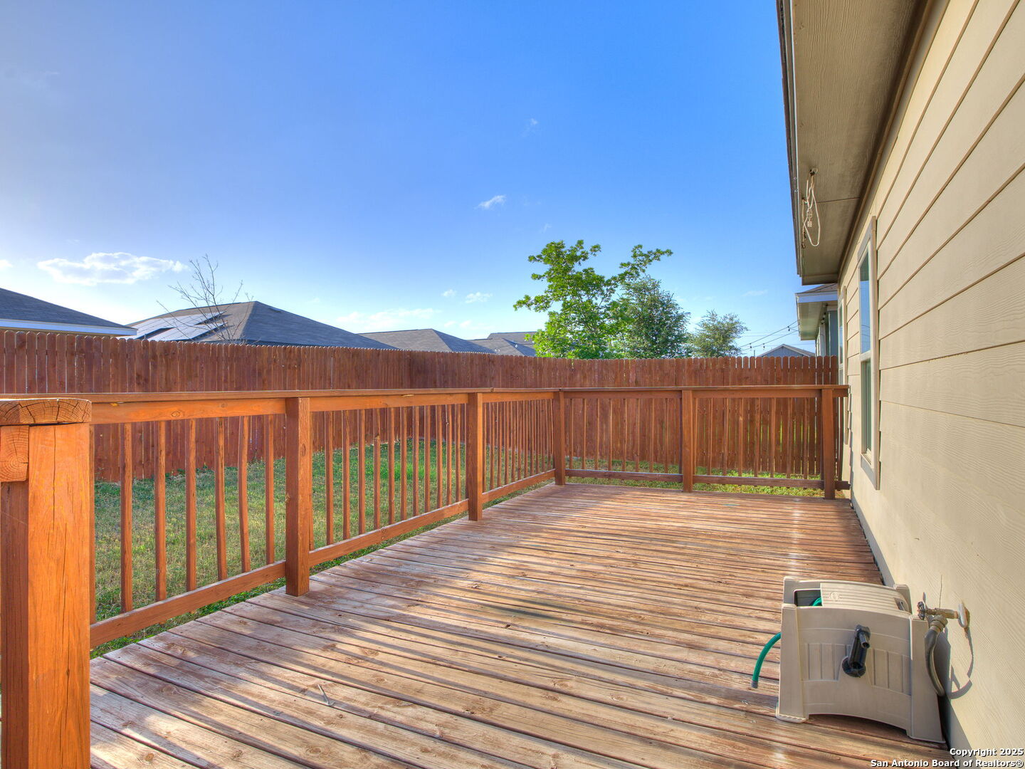 One story home with 4 bedrooms, 2 baths and 2 car garage. Open floor plan with heigh ceilings. Beautiful tile throughout main living areas. Kitchen features, island, granite C-tops, 42" cabinets, subway tile, walk in pantry, and SS appliances. Master bath with oversized walk-in shower, and 2 vanities. Exterior has covered Patio and deck set up for entertaining or relaxing. Texas A&M, Amazon Warehouse, and Toyota Manufacturing are a few minutes away.
