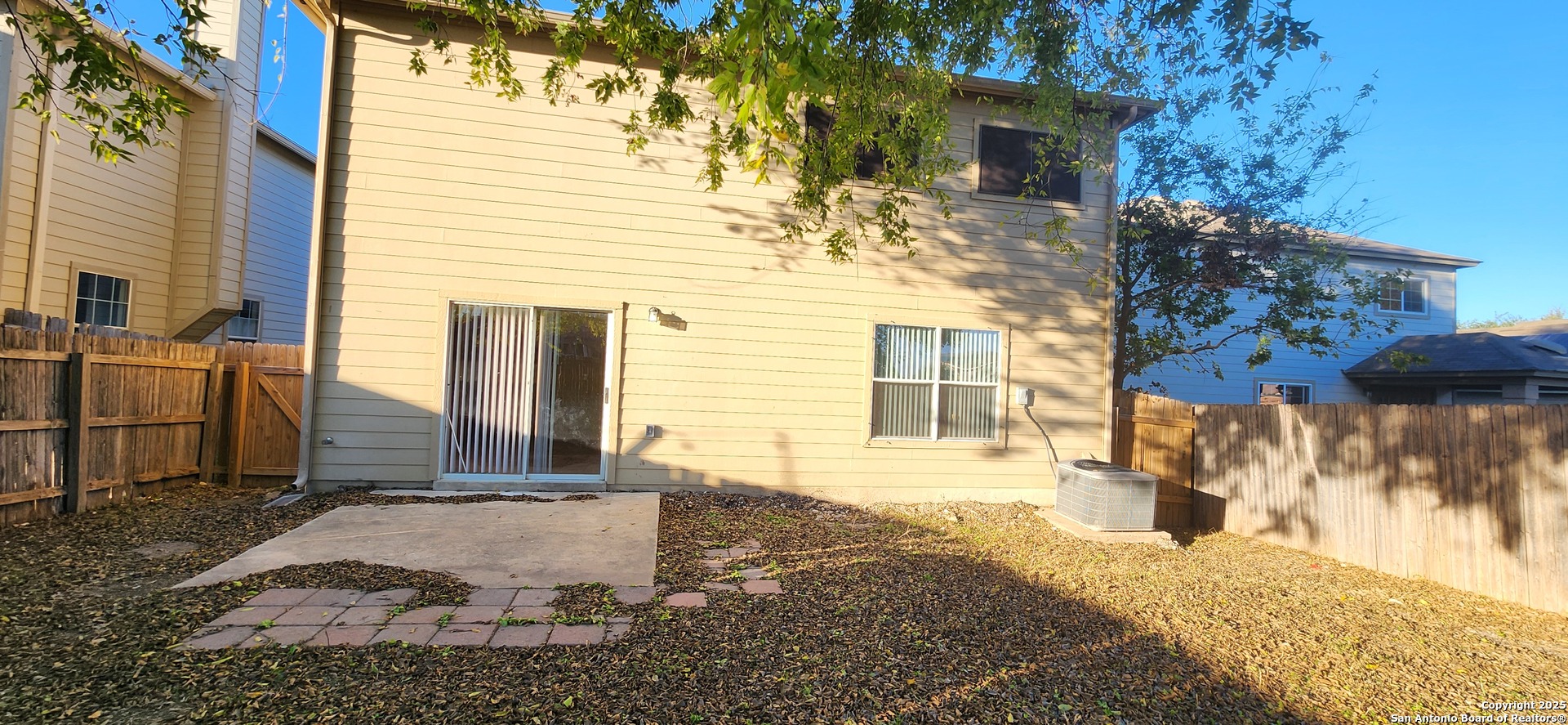 Welcome to this charming two-story home featuring 3 bedrooms and 2.5 bathrooms in the desirable Heritage Park community. The open-concept layout downstairs allows the living room to flow effortlessly into the dining area, while the kitchen offers a lovely view of the spacious backyard with mature trees. Bedrooms are located upstairs. Primary room has private en suite bathroom with beautiful walk-in shower Community amenities include a clubhouse, pool, and playground. Conveniently located inside 1604 and HWY 90, this home is close to Lackland AFB, major highways, and shopping.