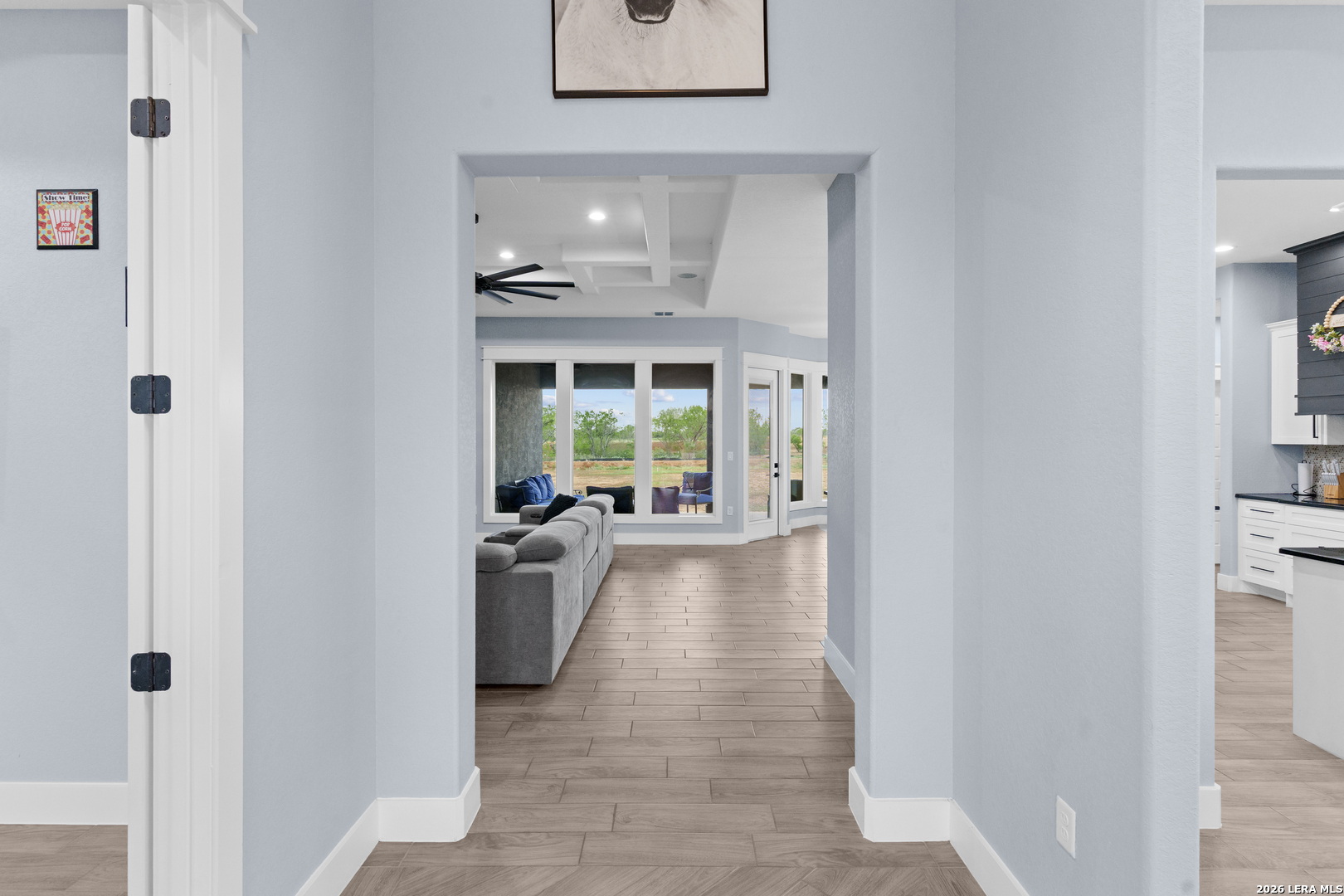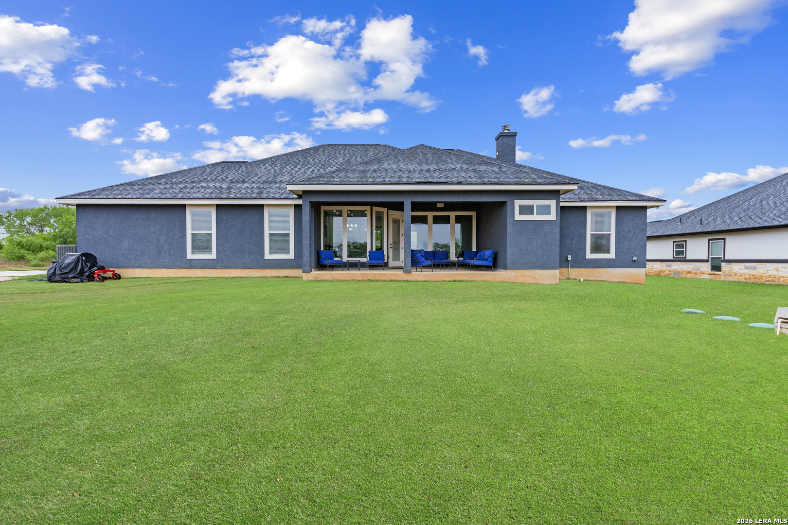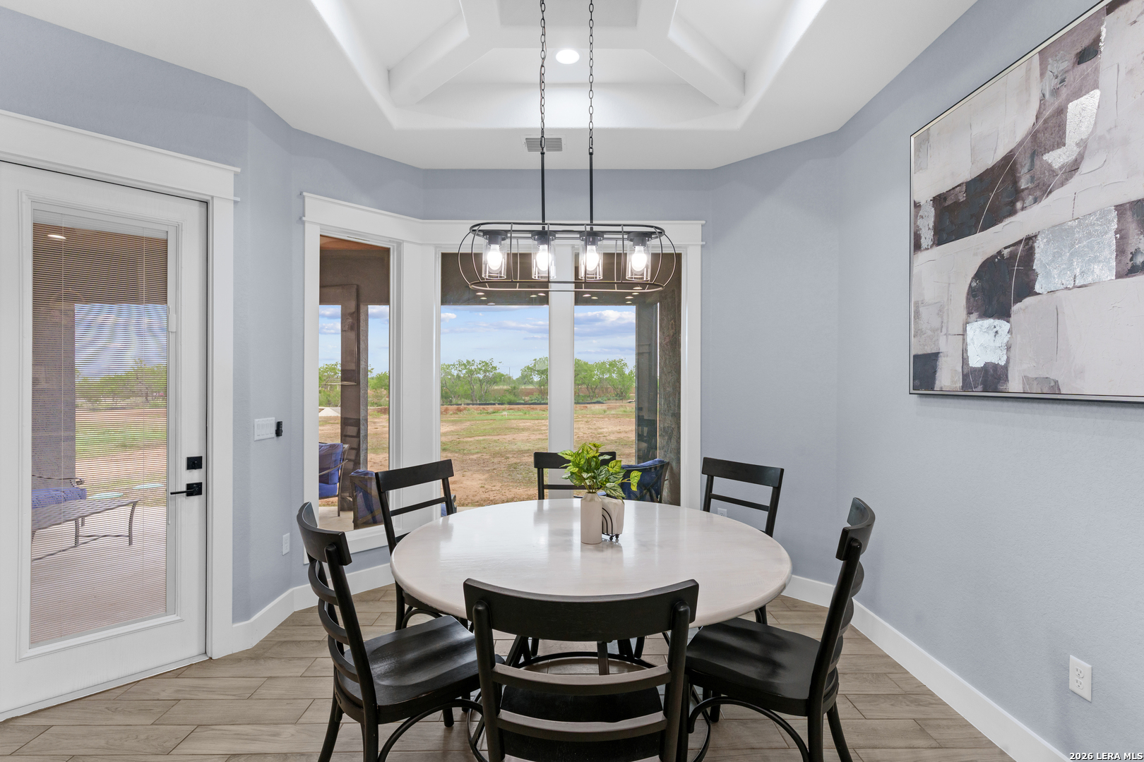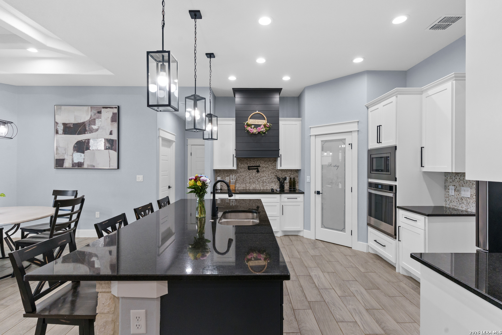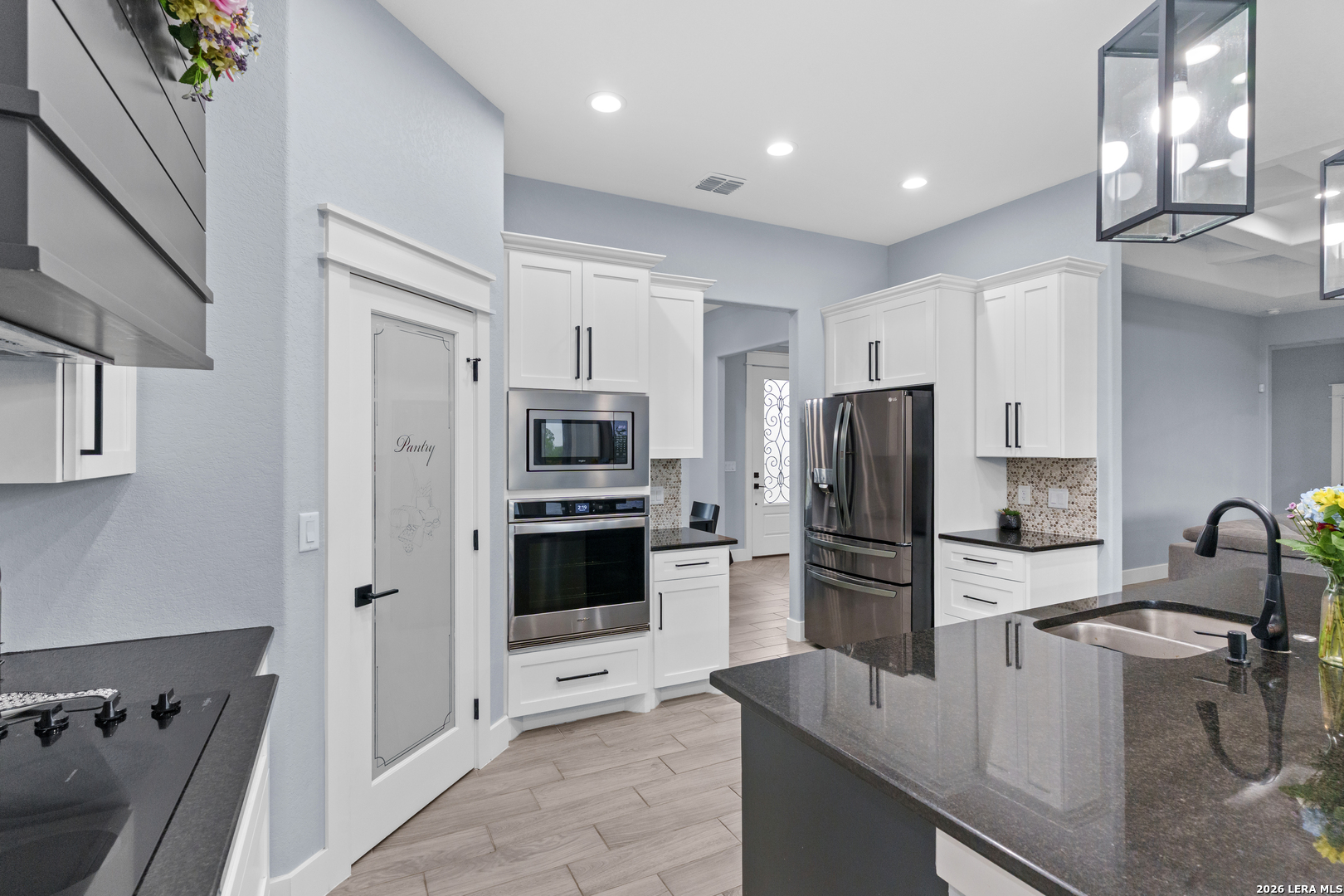 Welcome to this stunning modern contemporary home built in 2023, where style and functionality come together seamlessly. Designed with comfort in mind, this beautifully crafted residence features a level floor plan with no steps and elegant wood-look tile flooring throughout, completely carpet-free for easy maintenance. The spacious living room showcases a cozy wood-burning fireplace, complemented by sleek modern light fixtures, recessed lighting, and striking propeller-style ceiling fans with remote controls. You'll love the sophisticated trey ceiling designs that elevate nearly every room. The chef-inspired kitchen is a true centerpiece, boasting a large island, built-in stovetop, oven, and microwave, a custom range hood, and a convenient pot filler, perfect for everyday living and entertaining, along with gorgeous custom cabinetry throughout. The expansive primary suite offers a luxurious retreat with a spa-like bathroom featuring a modern walk-in shower with dual shower heads, including a waterfall feature, plus a generously sized closet. Additional highlights include a laundry room with a utility sink and a stylish backyard patio complete with a wood ceiling and fan, ideal for relaxing or hosting guests. This exceptional home is available as the sellers relocate for work, don't miss your opportunity to make it yours. Seller's are relocating due to work and will greatly miss this well-loved and maintained home.