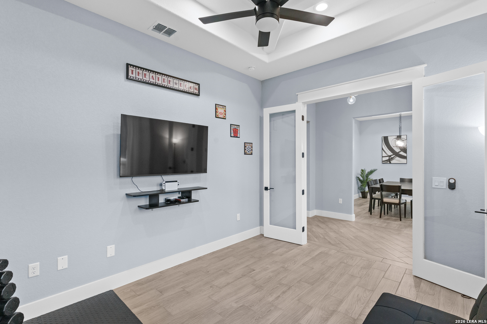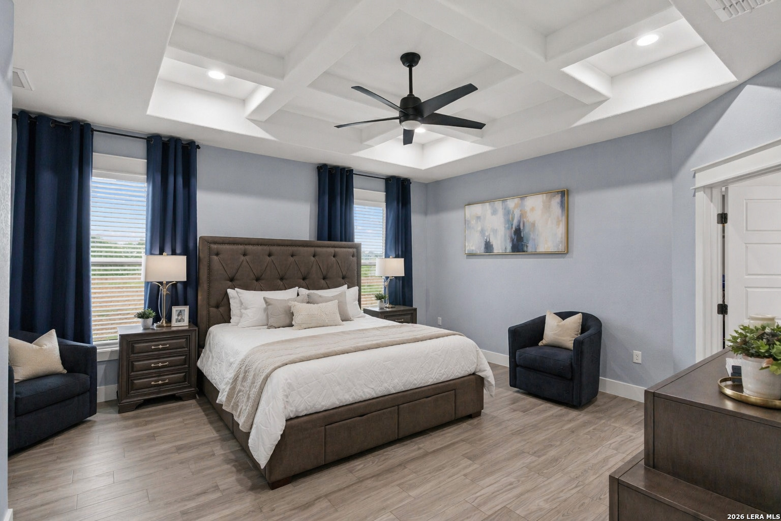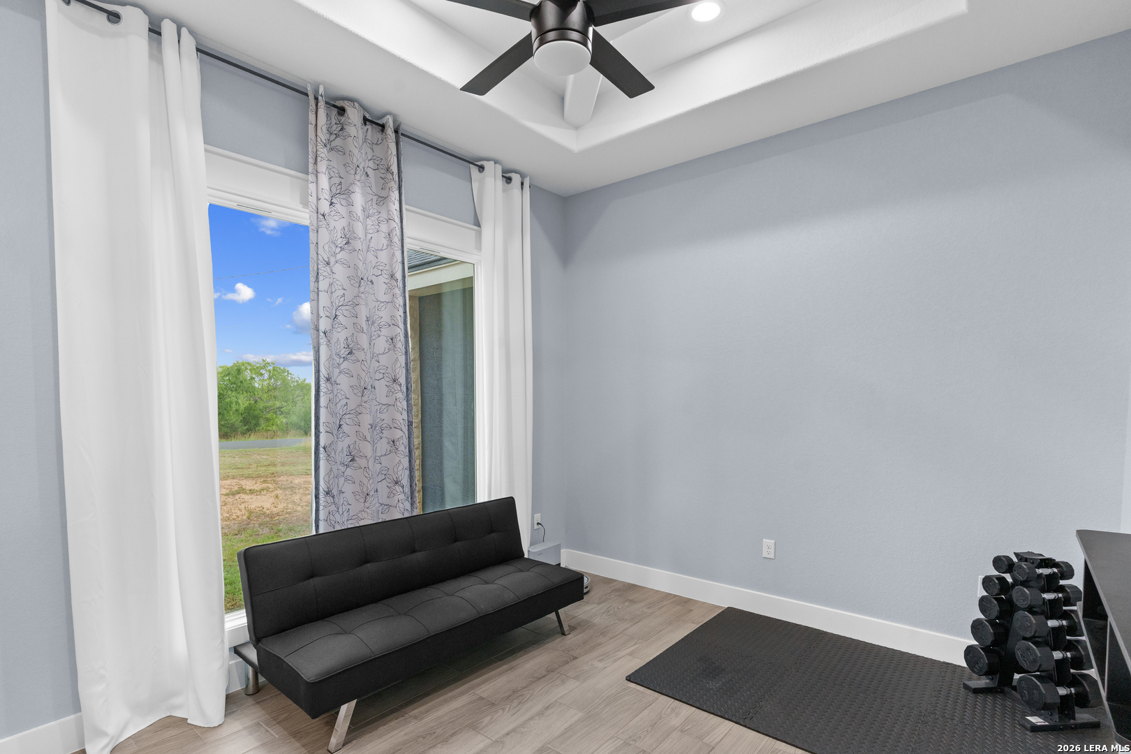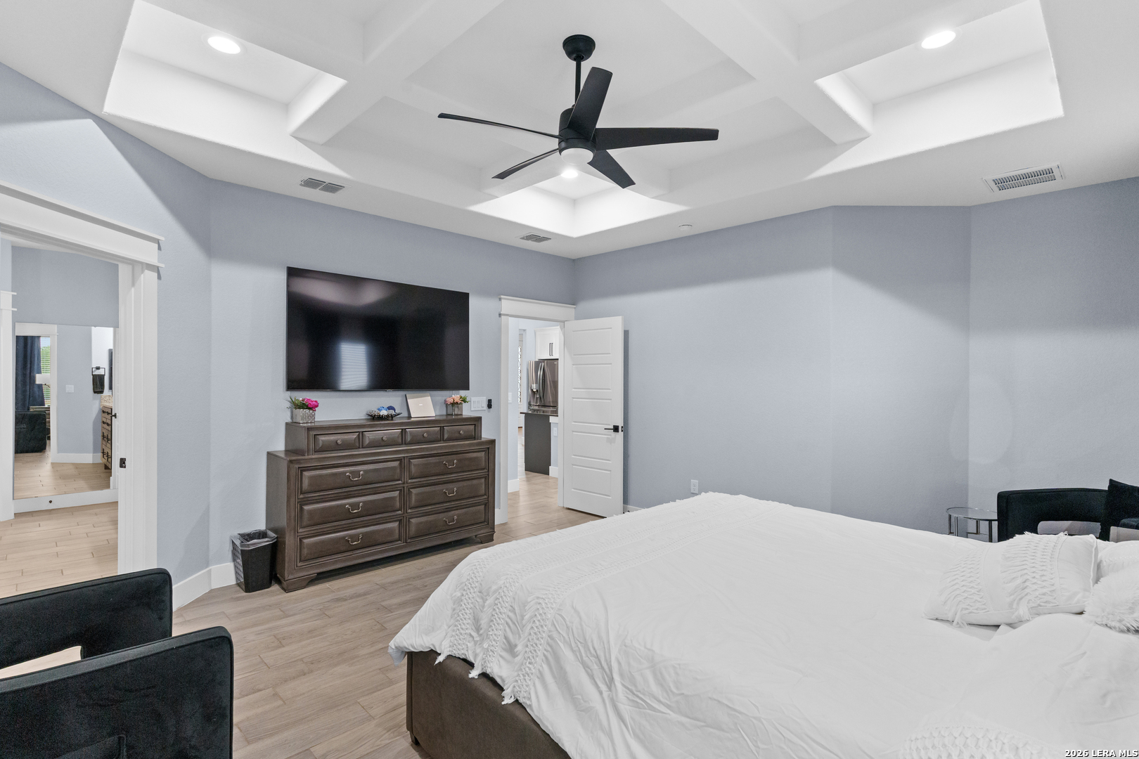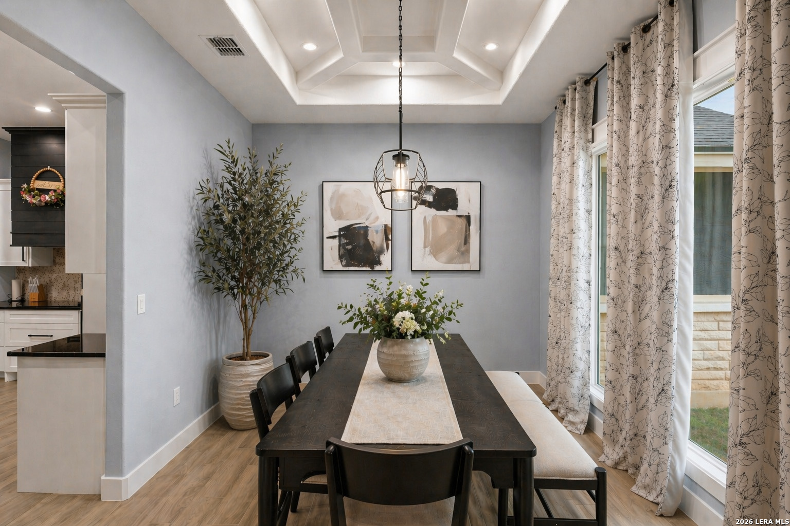 Welcome to this stunning modern contemporary home built in 2023, where style and functionality come together seamlessly. Designed with comfort in mind, this beautifully crafted residence features a level floor plan with no steps and elegant wood-look tile flooring throughout, completely carpet-free for easy maintenance. The spacious living room showcases a cozy wood-burning fireplace, complemented by sleek modern light fixtures, recessed lighting, and striking propeller-style ceiling fans with remote controls. You'll love the sophisticated trey ceiling designs that elevate nearly every room. The chef-inspired kitchen is a true centerpiece, boasting a large island, built-in stovetop, oven, and microwave, a custom range hood, and a convenient pot filler, perfect for everyday living and entertaining, along with gorgeous custom cabinetry throughout. The expansive primary suite offers a luxurious retreat with a spa-like bathroom featuring a modern walk-in shower with dual shower heads, including a waterfall feature, plus a generously sized closet. Additional highlights include a laundry room with a utility sink and a stylish backyard patio complete with a wood ceiling and fan, ideal for relaxing or hosting guests. This exceptional home is available as the sellers relocate for work, don't miss your opportunity to make it yours. Seller's are relocating due to work and will greatly miss this well-loved and maintained home.