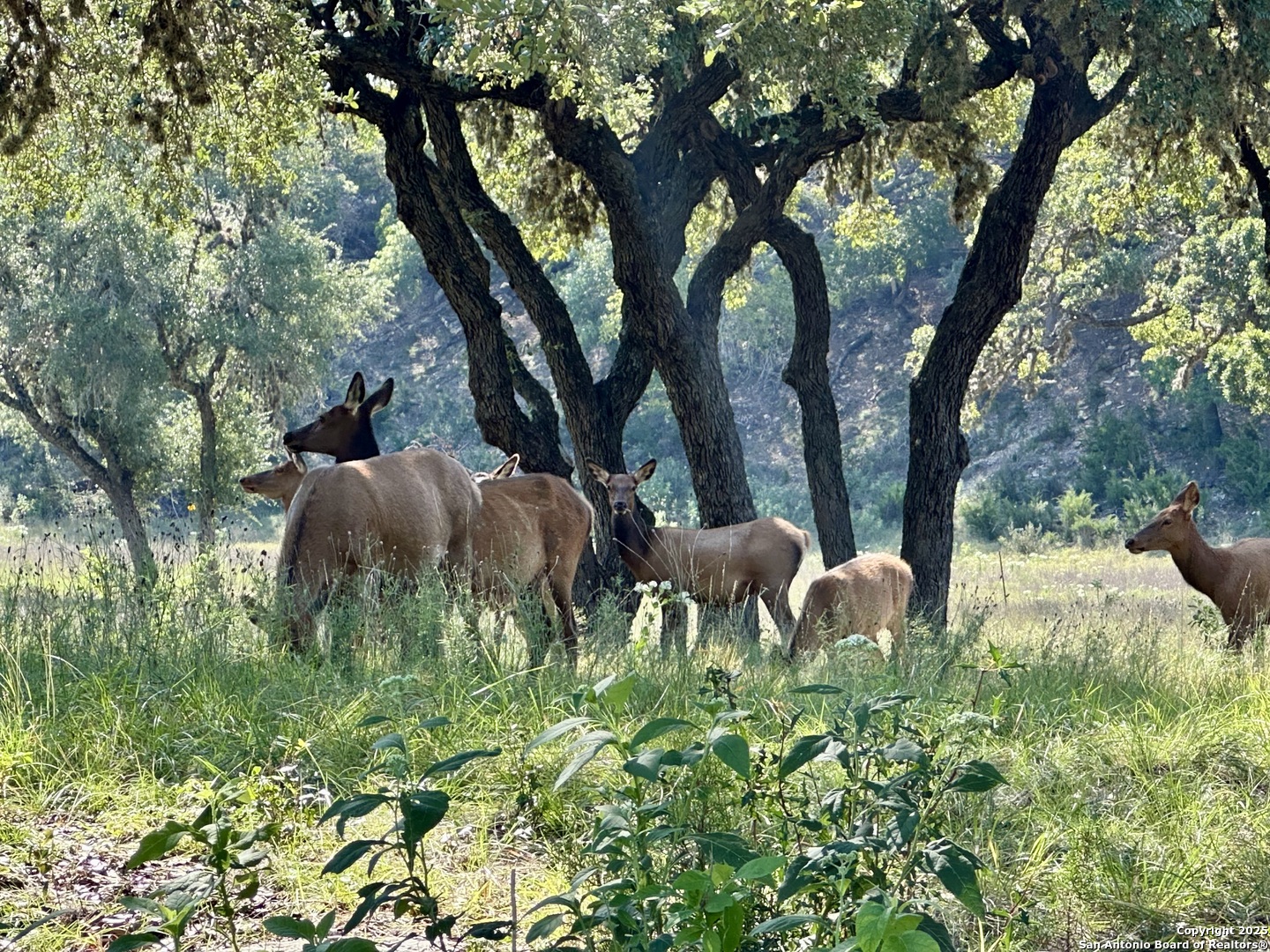 Wait, what...Elk in Texas on a waterfront piece of property? Yep! Welcome to Elk Mountain Ranch, a gated acreage community located just a few miles west of Boerne Hard. Hard to find 6.7 acres with approximately 130 feet of private water frontage in Elk Mountain Ranch, a high fenced development, offering ag. exempt acreage lots with views and amazing wildlife. A healthy herd of elk graze throughout the ranch, as well as white tail deer, some cattle, turkey and other native species. Lot 42 is extremely unique as it is just one of a few waterfront lots within the ranch that have direct access to the Madrona Creek, a year round body of water ideal for fishing, kayaking and paddle boarding. Lot 42 offers both incredible long range views, as well as a large peaceful meadow, mature trees and of course direct access to the water! You will see elk roaming and grazing as well as hear them bugling throughout the ranch. Light restrictions are in place with no mobile or manufactured homes being allowed. Tiny homes and barndominiums are allowed, as are various animals. Power is at the street. There is also a small community common area/park along the creek that offers two separate pavilions and BBQ grills, but lot 42 has it's own waterfront! A water well and septic system will be necessary once you decide to build. If you are ever looking for an amazing lot to build your dream home, vacation home or possibly short term rentals, you need to take a look at lot 42 in Elk Mountain Ranch as the elk, views and private creek frontage will simply blow you away! Don't wait on this one. It's the only lot available with private creek frontage and priced lower than several smaller lots with no water front!