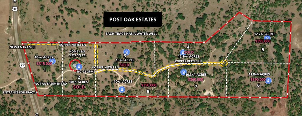 Gorgeous Post Oak covered tract with numerous building sites. New water well (+/-195' depth, +/-20 gpm) Newly built private, paved rd for access. Ag exempt. Abundant Wildlife. B&B or STR allowed. Just 15 minutes from Historic and Charming Fredericksburg.