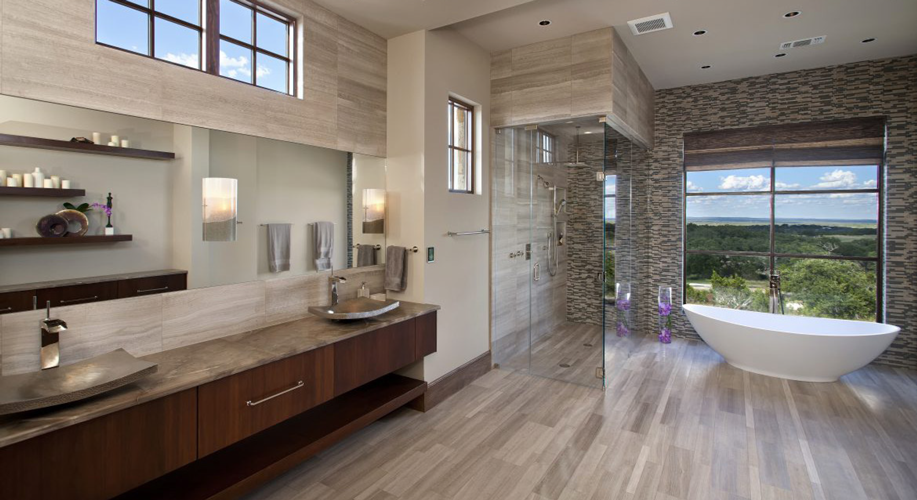 This beautiful contemporary home’s interior includes abundant exotic features including herringbone marble floors, 1850s reclaimed longleaf pine ceiling and slat walls. The master bedroom and ensuite showcase fabulous long-range views of the scenic Texas Hill Country from the large windows and walk out balcony.