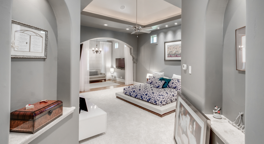 One of the finest masterpieces Hollaway Custom Homes Co has built, this stunning estate is nestled inside the gates of the prestigious Bentley Manor community. Combining the glory of the past with high-end finishes, this grandiose master bedroom offers complete luxury with its spacious sitting room, detailed ceiling, oversized dressing room and elegant ensuite bath.