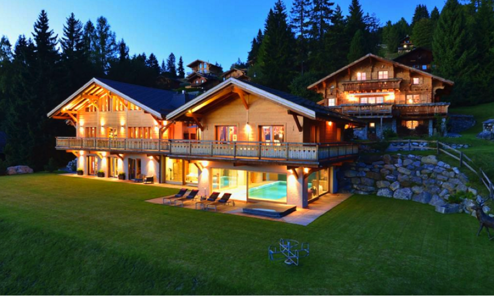 Located in Gryon, Switzerland (and adjacent to several ski resorts in the Swiss Alps), twin chalets “Nasha” and “Tasha” offer both modern and traditional luxury features, including the opportunity to ski-in and ski-out directly from the property. Although its San Antonio sister-property doesn’t include a mountain range, its location in the Texas Hill Country does provide an exclusive view of the rolling hills that make up the region. From Swarovski crystal chandeliers to built in beer taps to the outdoor kitchen overlooking the private putting green, this magnificent property is designed with functionality and grandeur.