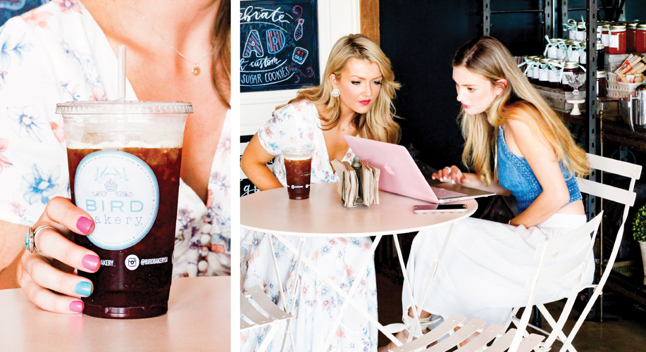 She sat there dressed in a white and floral maxi dress from a local Boerne boutique, Ella Blue, paired with clogs fit for a busy day. Her dress was the perfect transition piece from a coffee date to a photo-shoot. In the Texas heat, she not only looked amazing, but stayed cool. I opted for a braided crop top and flowy white skirt from my latest trip to La Cantera. I can’t seem to make it out of my favorite outdoor mall without snagging a bag, or two, or three!