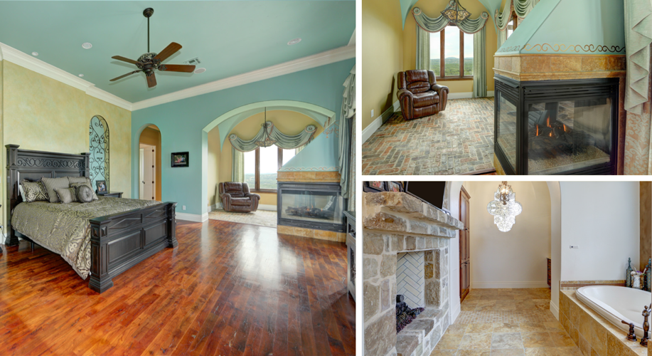 Nothing says luxury quite like a custom fire pit with seating for 15+ people that overlooks a protected greenbelt and offers unobstructed views of the city. Once inside this stunning Mediterranean home, enjoy the warmth of its rock fireplace located in the spacious family room or move to the master suite with its own personal fireplace for a more private setting.