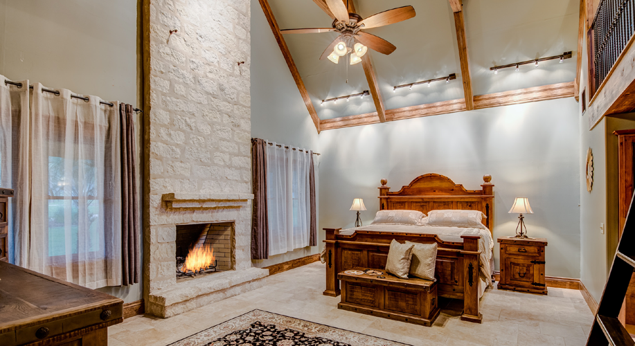 This stunning estate located in Altair offers 10 acres and incredible views for miles. Its hot tub is not the only source of warmth in this home though. The master suite offers a distinct fireplace that can be enjoyed while lying in bed or relaxing in the master’s sitting area. In the master bath, enjoy watching the flames dance as you relax in its spacious bathtub. The family room and outdoor patio also boast rock fireplaces that can be enjoyed while watching the sun set over the gorgeous hill country.