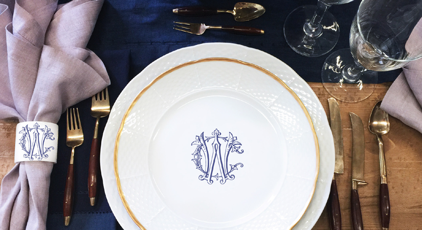 Sasha Nicholas tableware can be found at fine and specialty retailers as well as online. The classic, elegant scalloped Weave Collection is available with opulent, 24 karat hand-painted thick gold edging with or without monograms; it pairs beautifully with your inherited pieces and is available in 21 styles. The white ware contemporary Imagine Collection is designed in the Scandinavian aesthetic. It not only showcases your food but also your monogram and is offered in 11 styles. All pieces are hand-decorated and kiln-fired at the finest European porcelain factories.