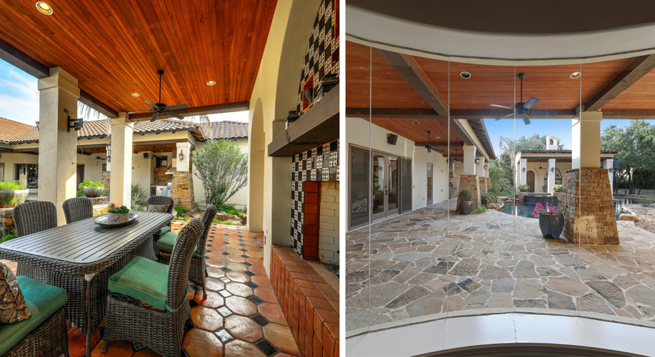 Artfully executed by renowned architect and builder, Steve Heflin, this Hill Country Village estate offers a courtyard, Keith Zars pool and spa, outdoor kitchen with TV and Fireplace and a sports court.