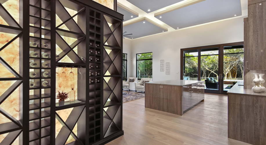 This impressive and unique custom home located in The Highlands boasts an open concept with the family, kitchen and dining rooms. Holiday guests will envy the exposed beams, floor-to-ceiling windows, commercial kitchen with Viking appliances and breathtaking temperature-controlled wine room that can easily hold all the bottles you collected during Texas Wine Month.