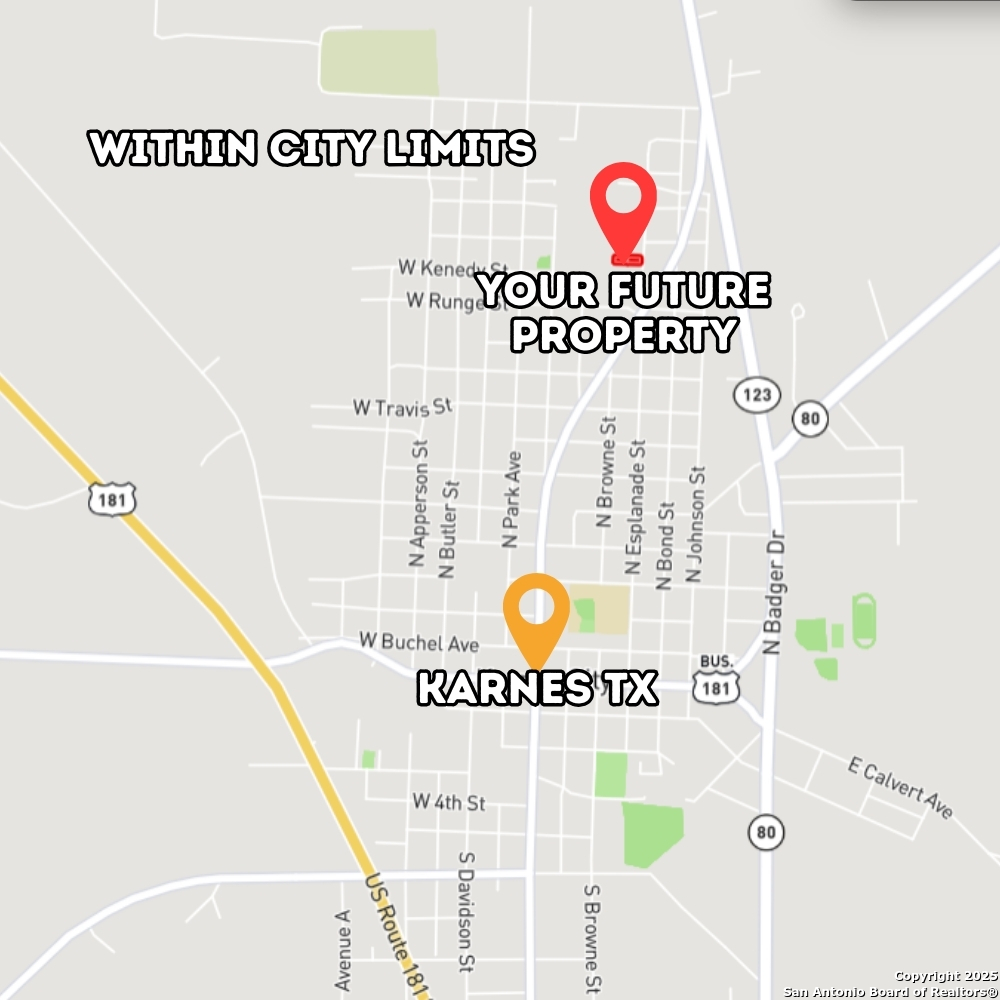 MOTIVATED SELLER. Discover a standout 0.23-acre lot on N Esplanade Street in Karnes City, Karnes County-located inside city limits with unrestricted residential zoning. This flat, build ready parcel supports SF homes, barndominiums, modular or manufactured housing, multifamily units, mobile homes, and RVs-delivering unmatched flexibility. Situated with full city utilities (water, sewer, electricity) available at the street, the lot's approximately 125 feet of frontage by 50 feet deep offers ample layout options. With no HOA restrictions and located just minutes from U.S. Highway 181-each providing fast access to San Antonio (approx. one hour away)-this site blends small-town convenience with regional connectivity. Whether you're building now, investing for the future, or creating a flexible income generating setup, this property gives you freedom, infrastructure readiness, and growth potential in a growing South Texas community.